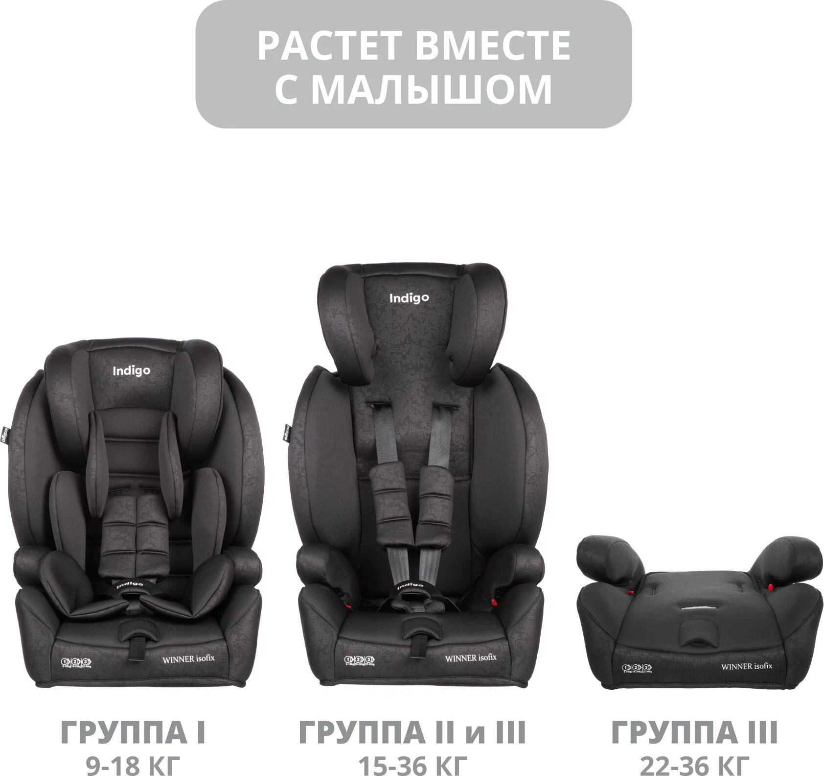 Автокресло Indigo WINNER YB706B, для детей 9-36кг, крепление ISOFIX, черный-серый интересное: