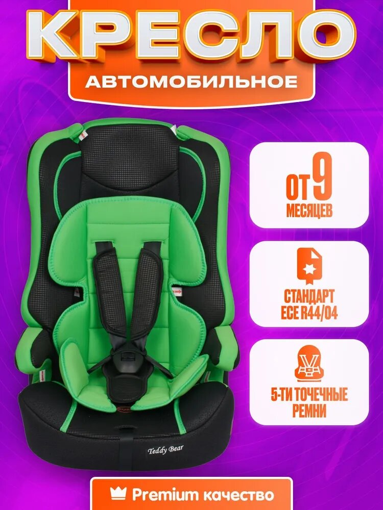 Автокресло 28. Green+Black Dot 513F PREMIUM, 9-36кг, съемные вкладыш и чехол интересное: