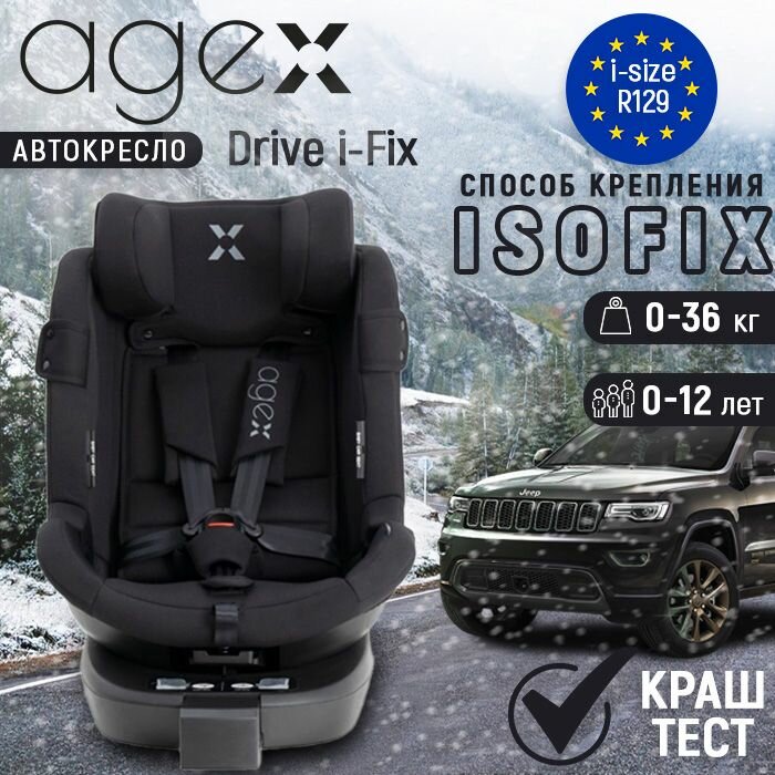 Автокресло детское Agex Drive i-fix 0-36 кг 0-12 лет Isofix (Серый) интересное: