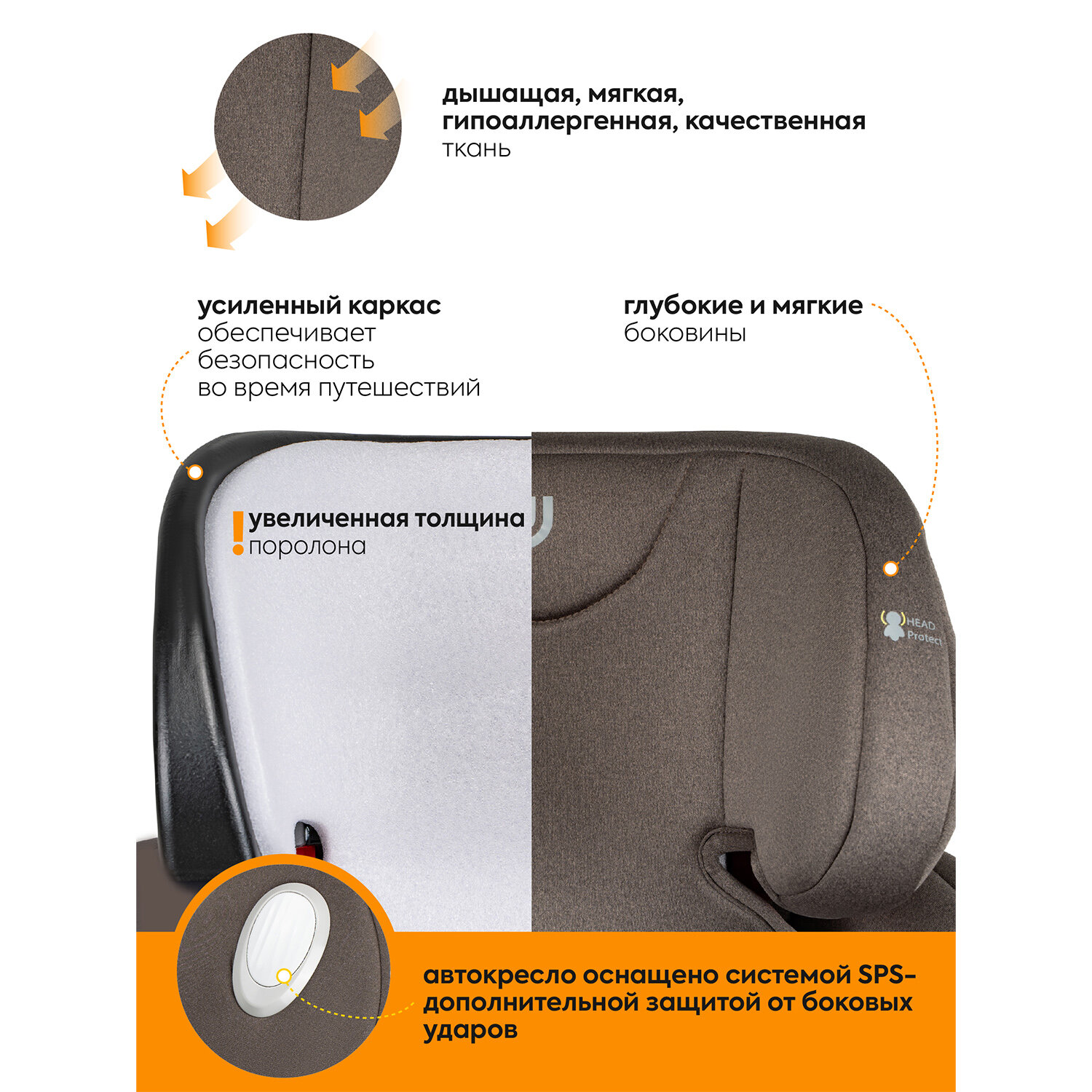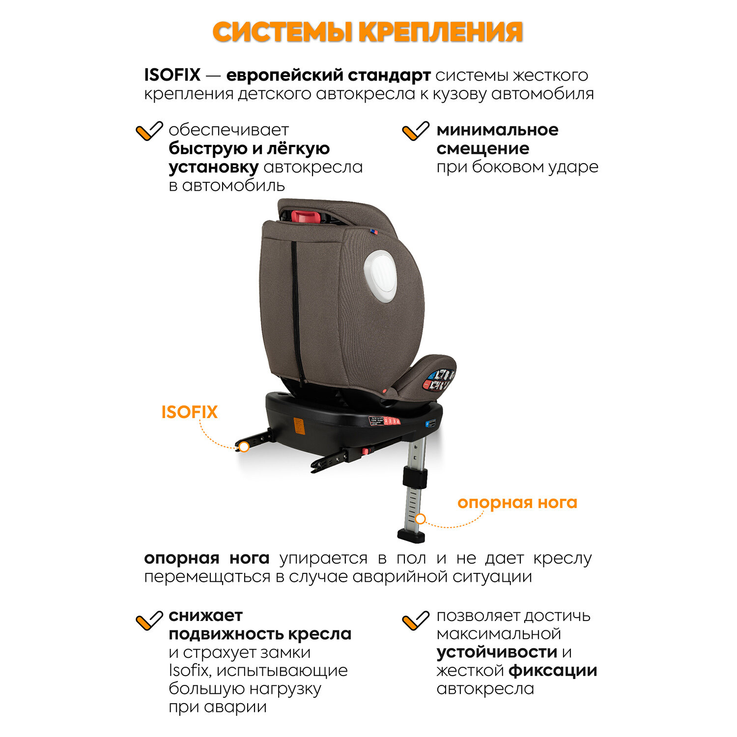 Автокресло детское Jovola Jet Isofix для новорожденных, 0-36 кг, группа 0+1+2+3, с упором в пол, бежевый-коричневый интересное: