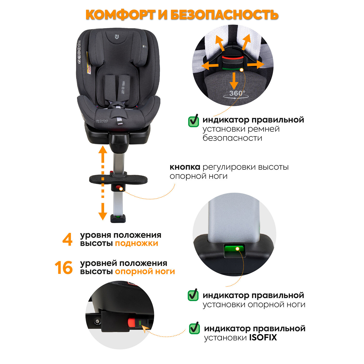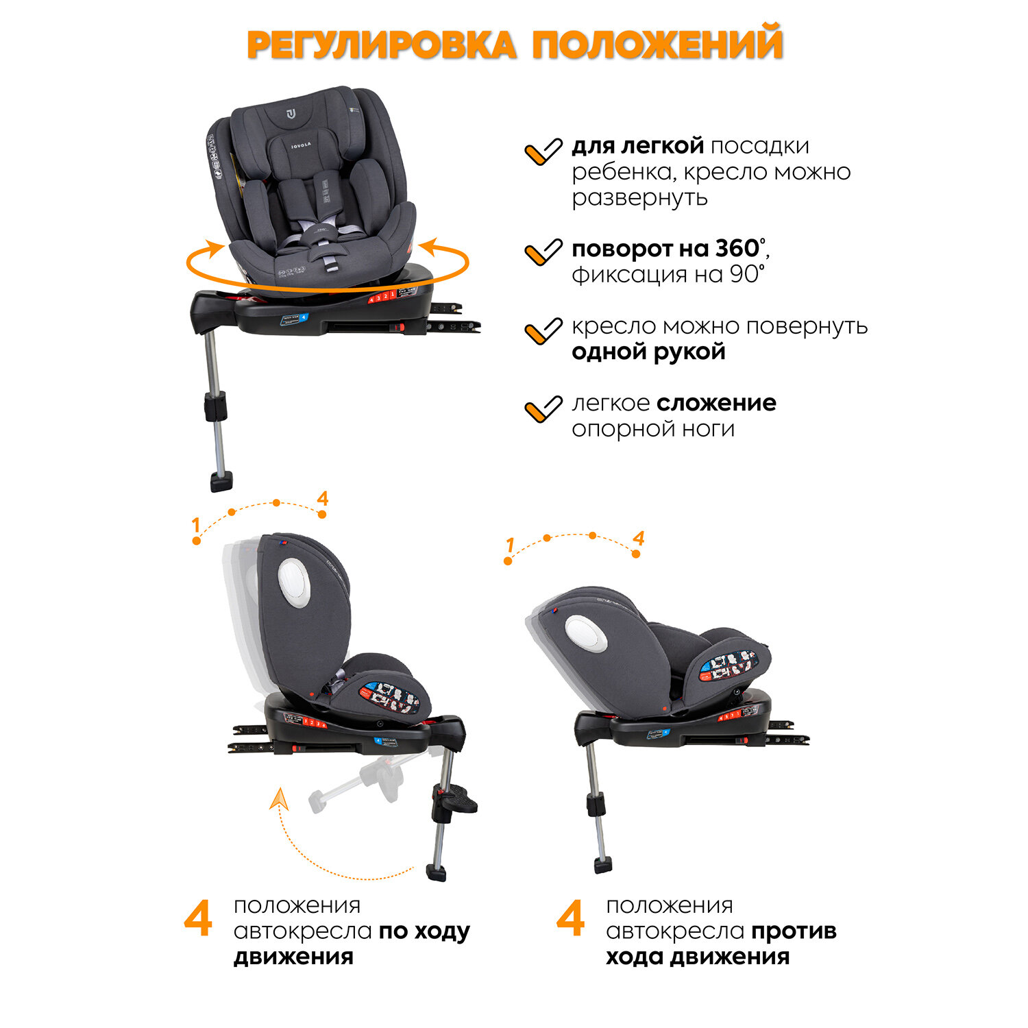 Автокресло детское Jovola Jet Isofix для новорожденных, 0-36 кг, группа 0+1+2+3, с упором в пол, серый интересное: