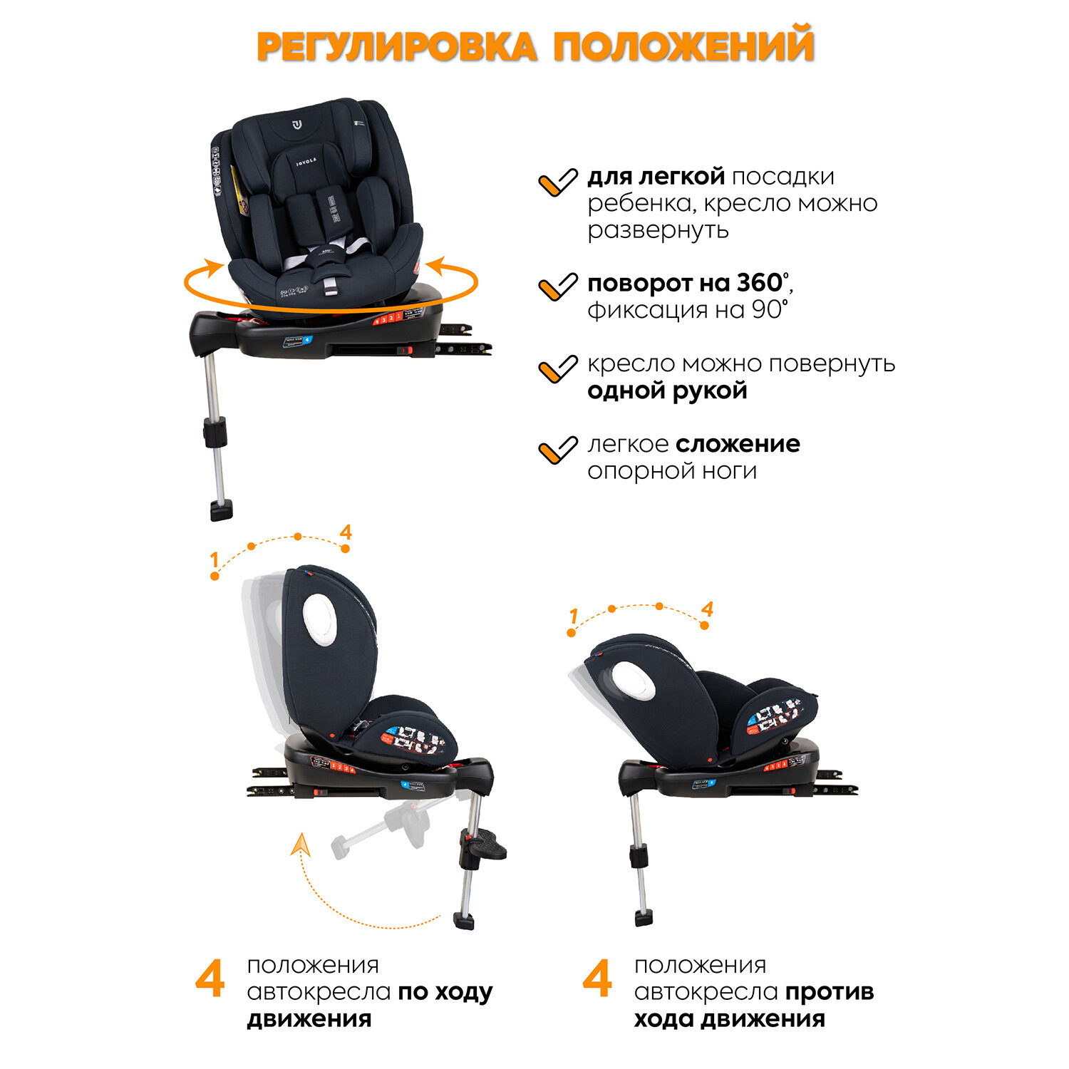 Автокресло детское Jovola Jet Isofix для новорожденных, 0-36 кг, группа 0+1+2+3, с упором в пол, черный интересное: