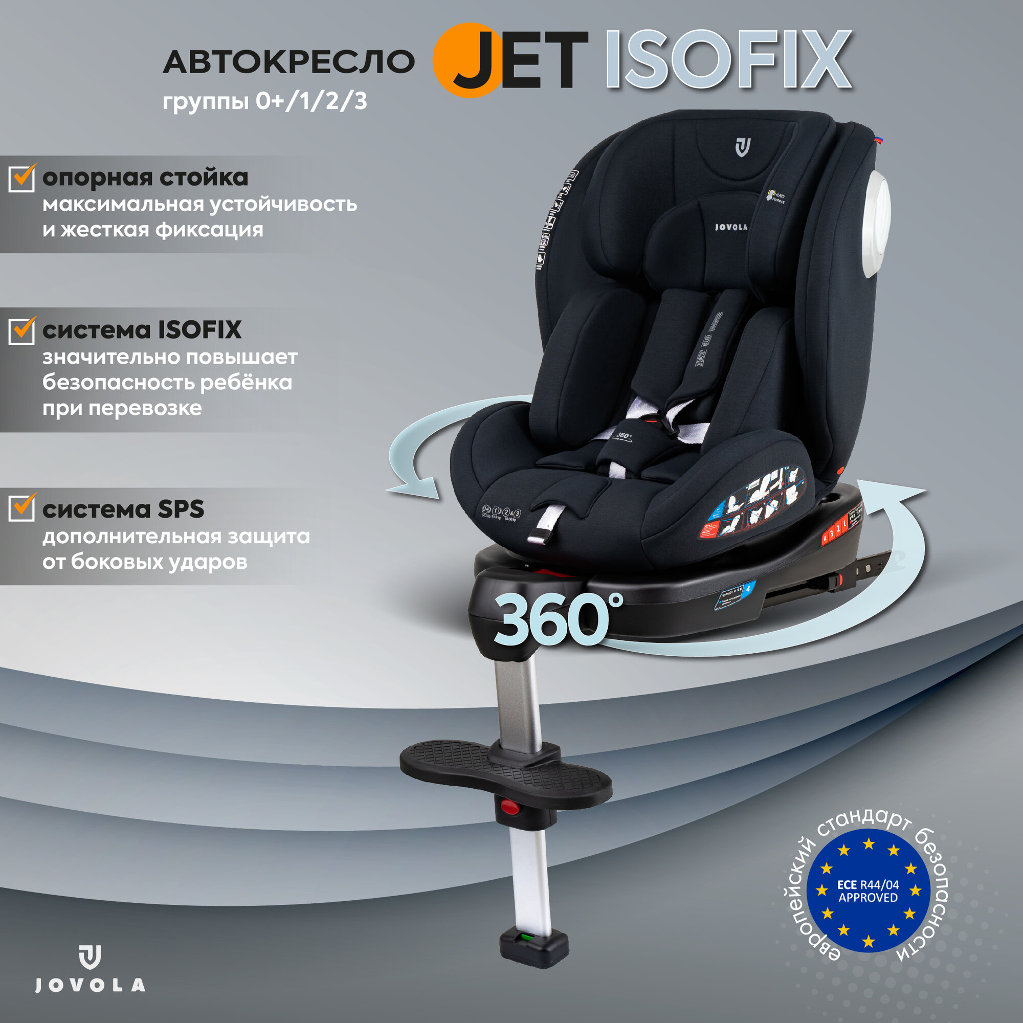 Купить Автокресло детское Jovola Jet Isofix для новорожденных, 0-36 кг, группа 0+1+2+3, с упором в пол, черный