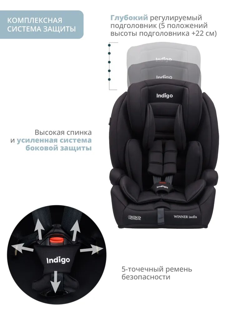 Автокресло INDIGO WINNER YB706B, крепление Isofix, 9-36кг, черные матовые интересное: