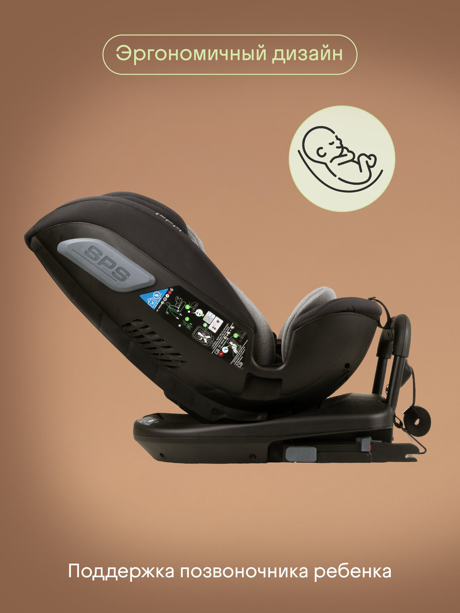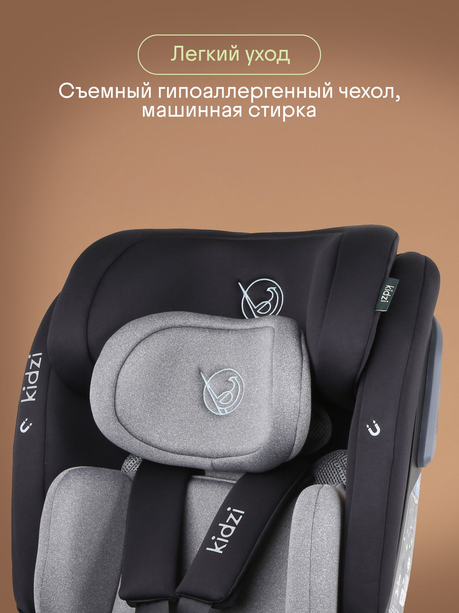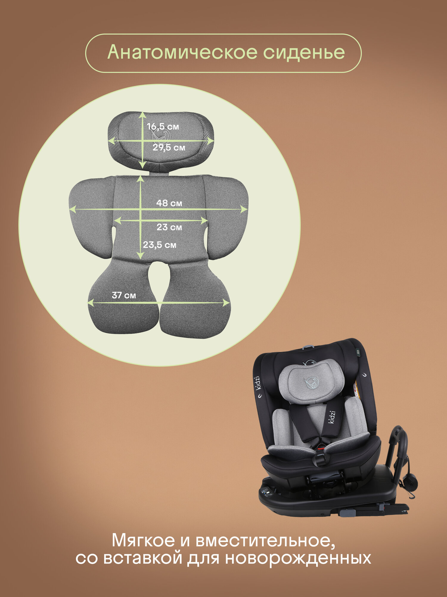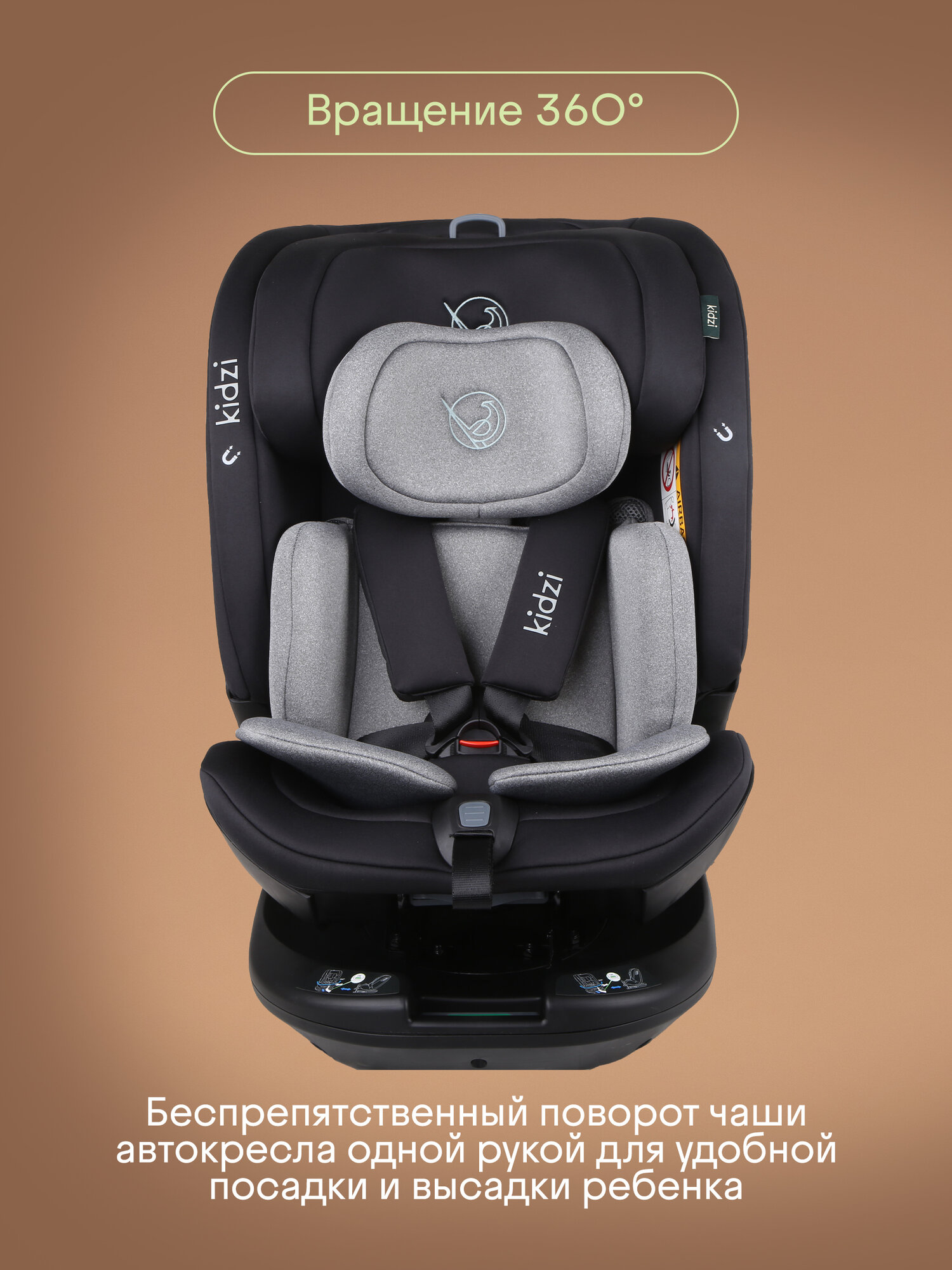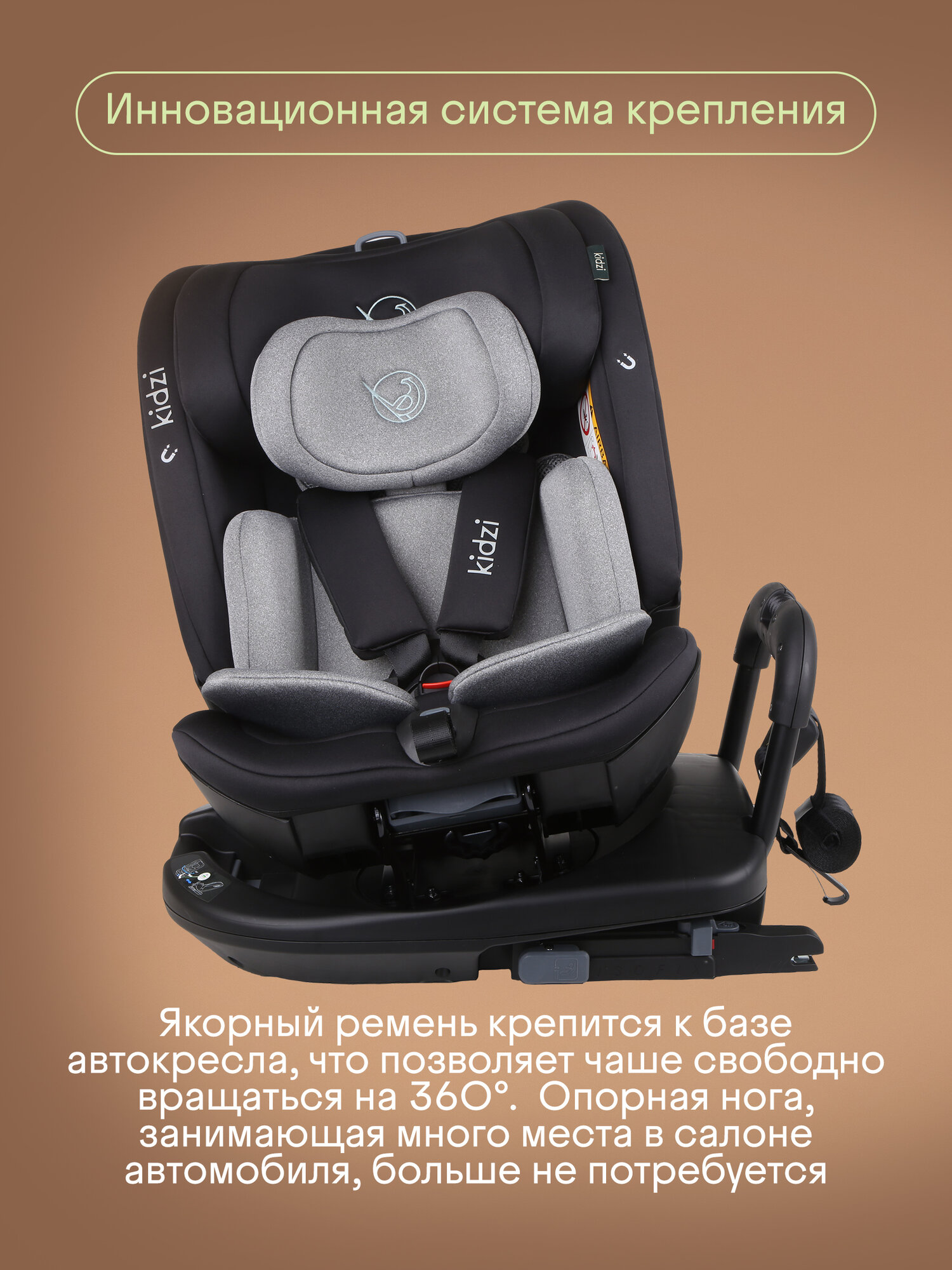 Автокресло детское Kidzi SPIN PLUS 360 i-SIZE для новорожденных и детей ростом 40-150 см, c ISOFIX и якорным ремнем, черно-серый интересное: