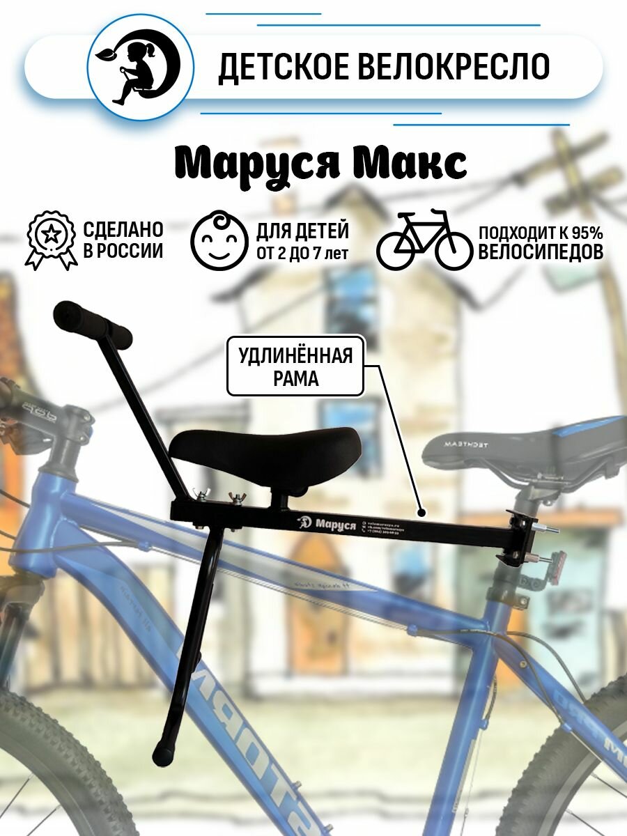Велокресло переднее Маруся Max с ручкой интересное: