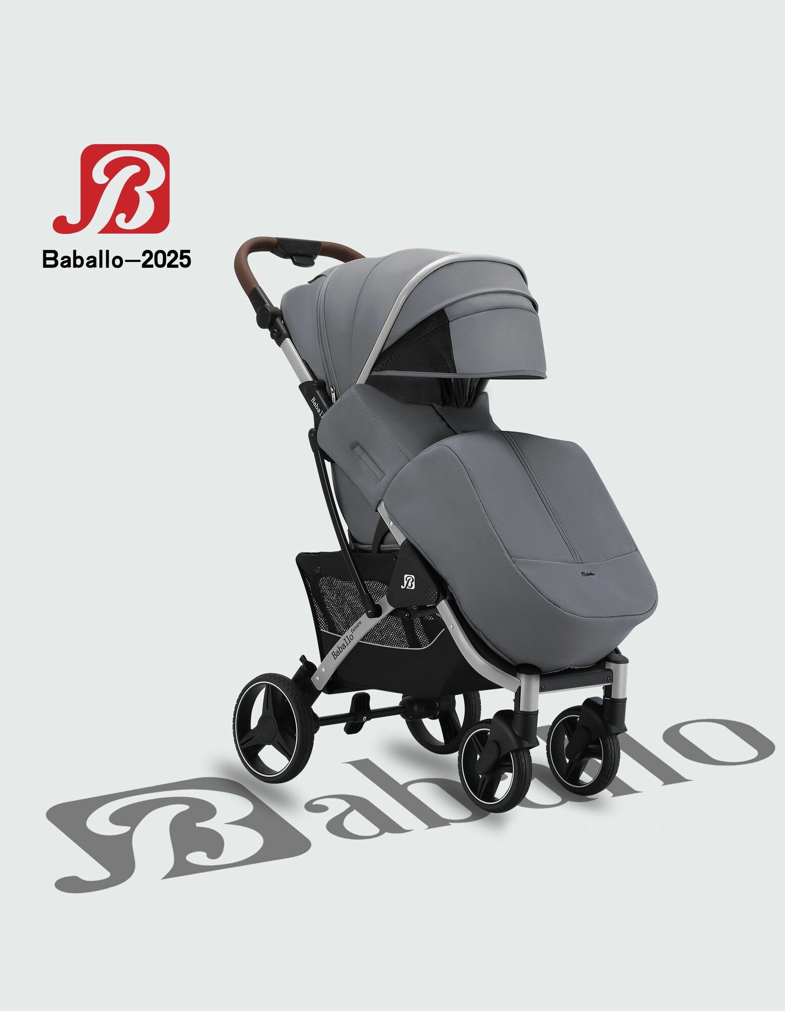 Купить Детская прогулочная коляска Babalo future 2025 NEW Серая, Рама серебряная, механическая спинка, сумка в комплекте