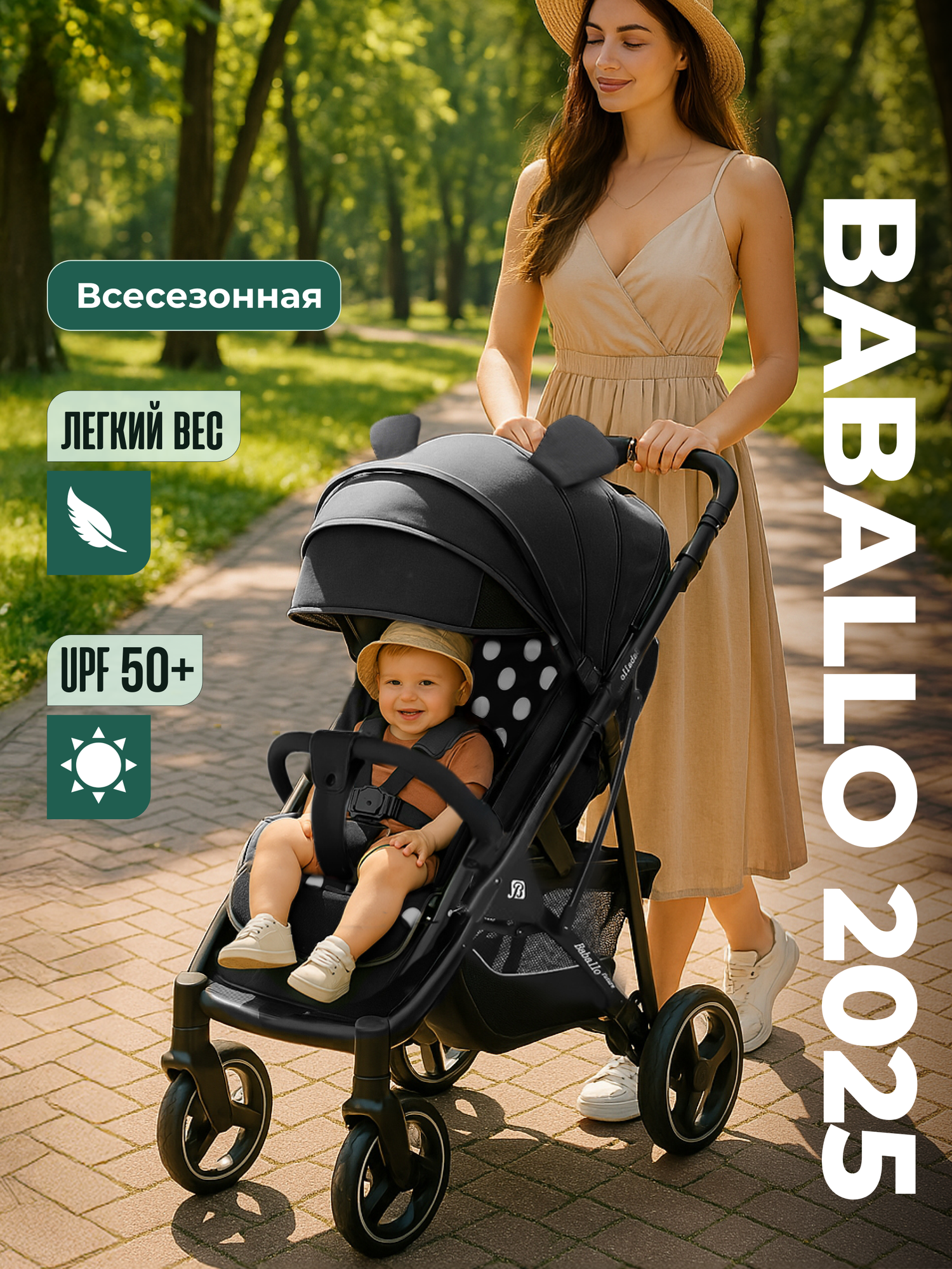 Детская прогулочная коляска Babalo future 2025 NEW Черная, Рама черная, механическая спинка, сумка в комплекте