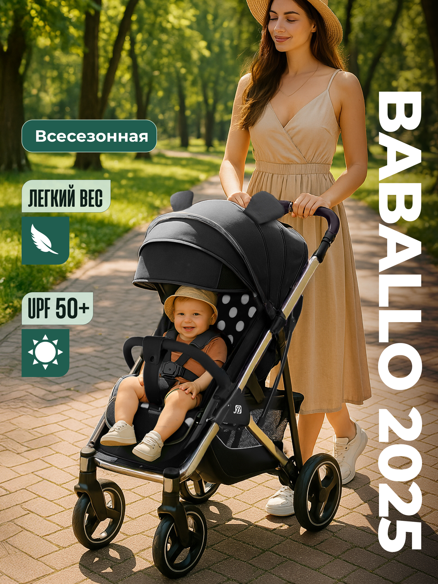 Детская прогулочная коляска Babalo future 2025 NEW Черная, Рама серебряная, механическая спинка, сумка в комплекте