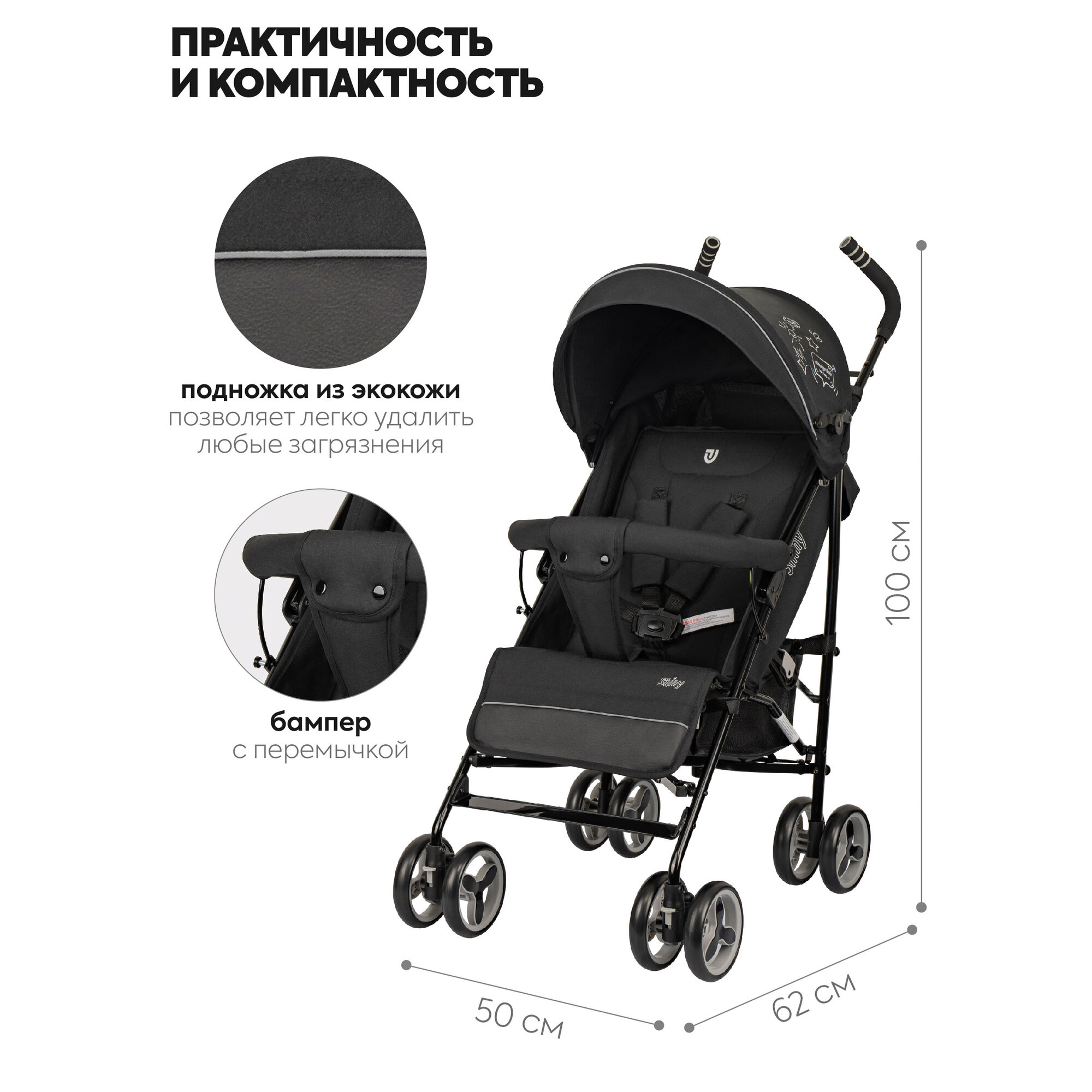 СохранитьКоляска трость детская прогулочная Jovola Shiny, легкая, для путешествий, черный интересное: