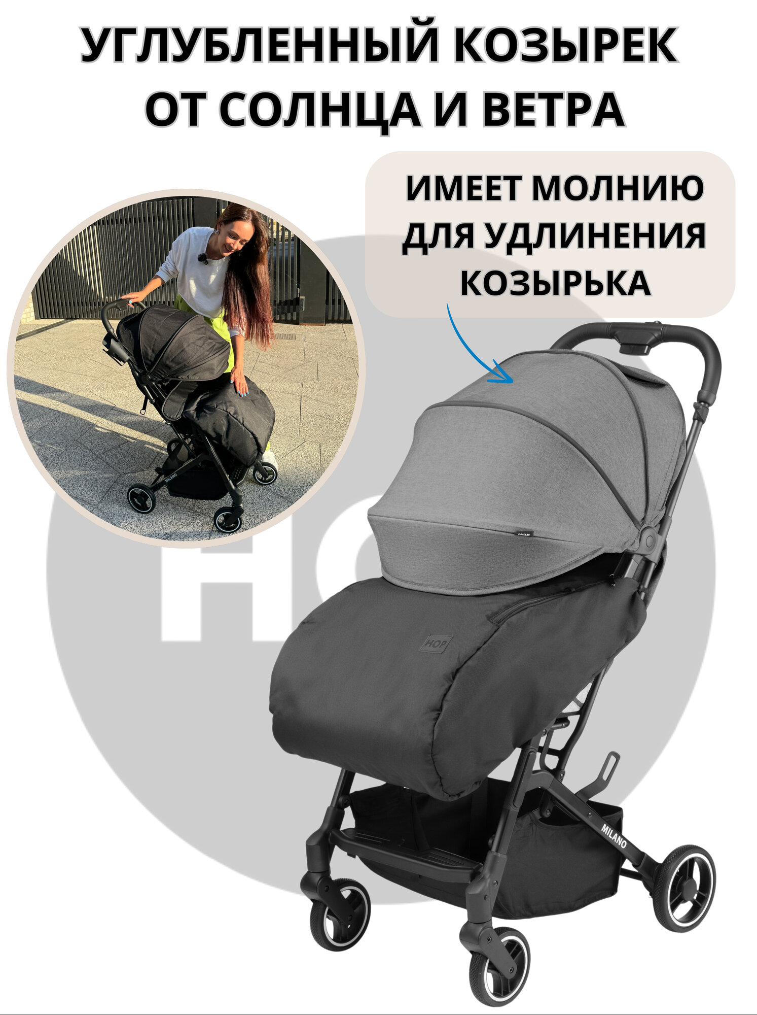 Коляска прогулочная лёгкая складная - HOP Milano - Grey (Серый) интересное:
