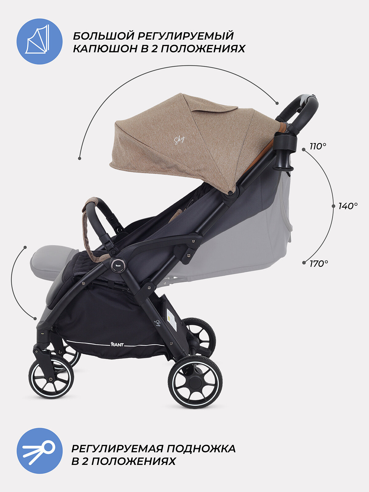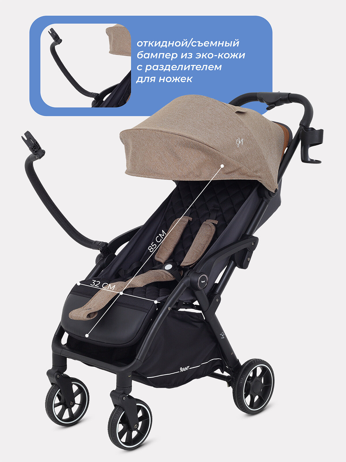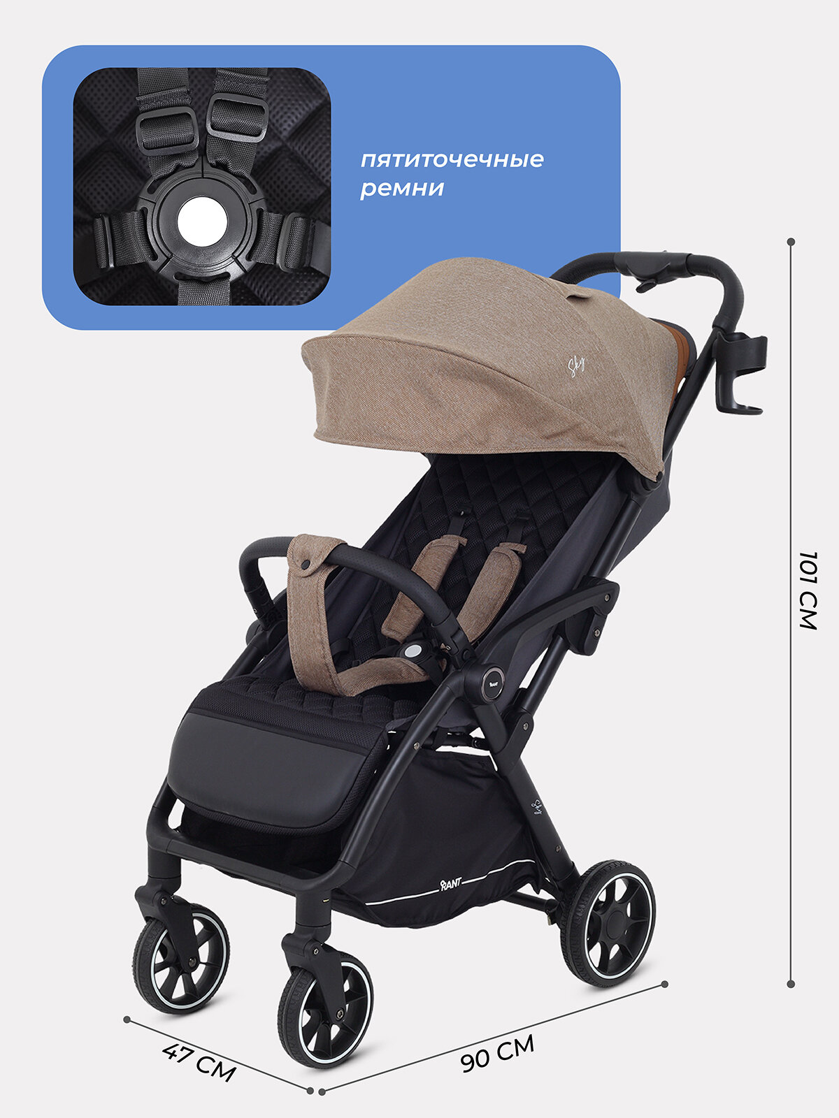 Коляска прогулочная детская с автосложением для путешествий RANT "SKY" RA400 Brown 2025 интересное: