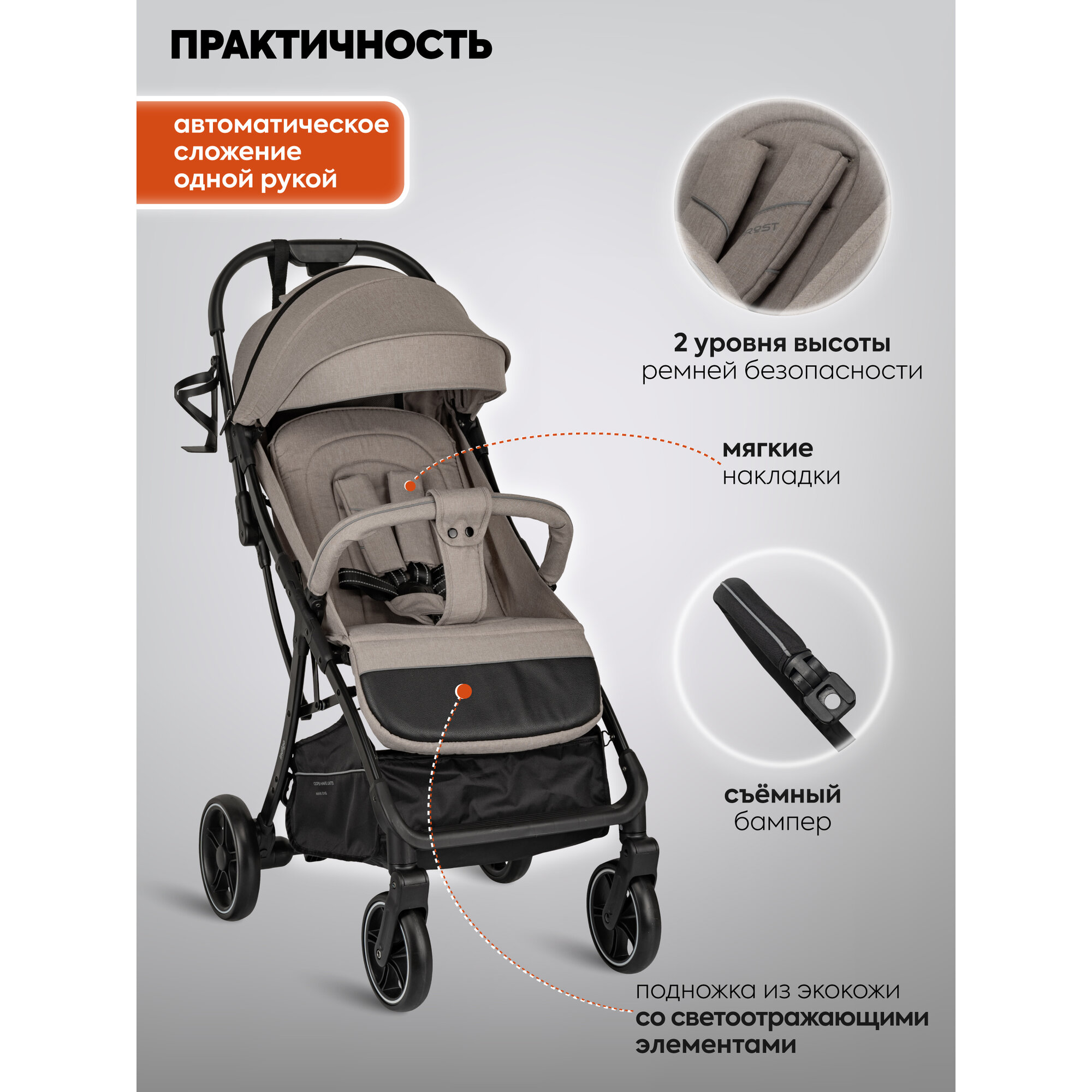 Коляска детская прогулочная Indigo Frost легкая, с автосложением, бежевый интересное: