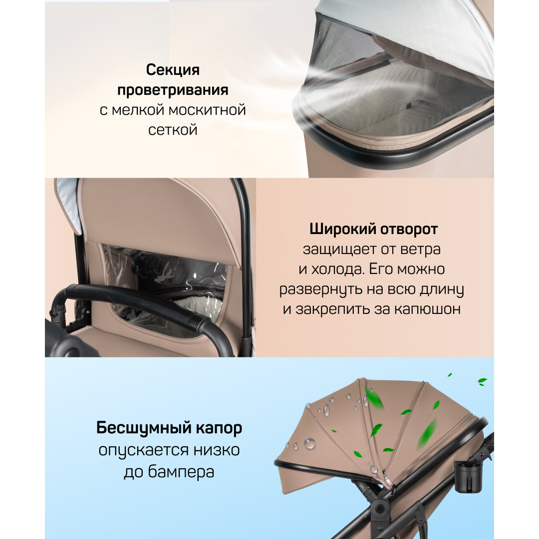 Детская коляска-трансформер для новорожденных Aimile Adventurer, бежевый