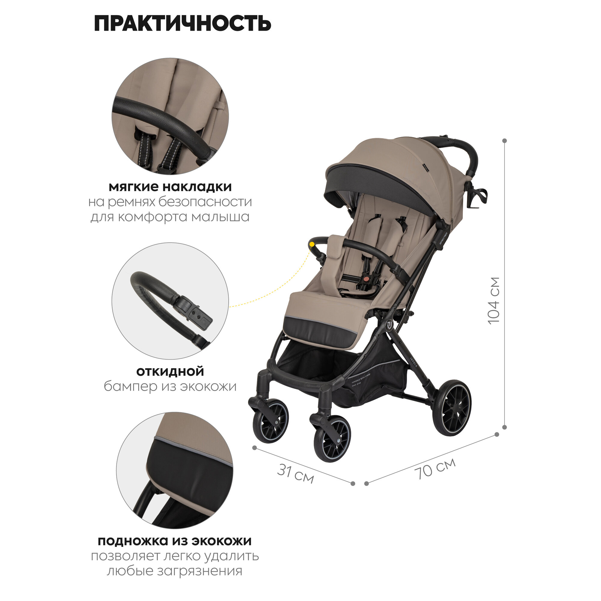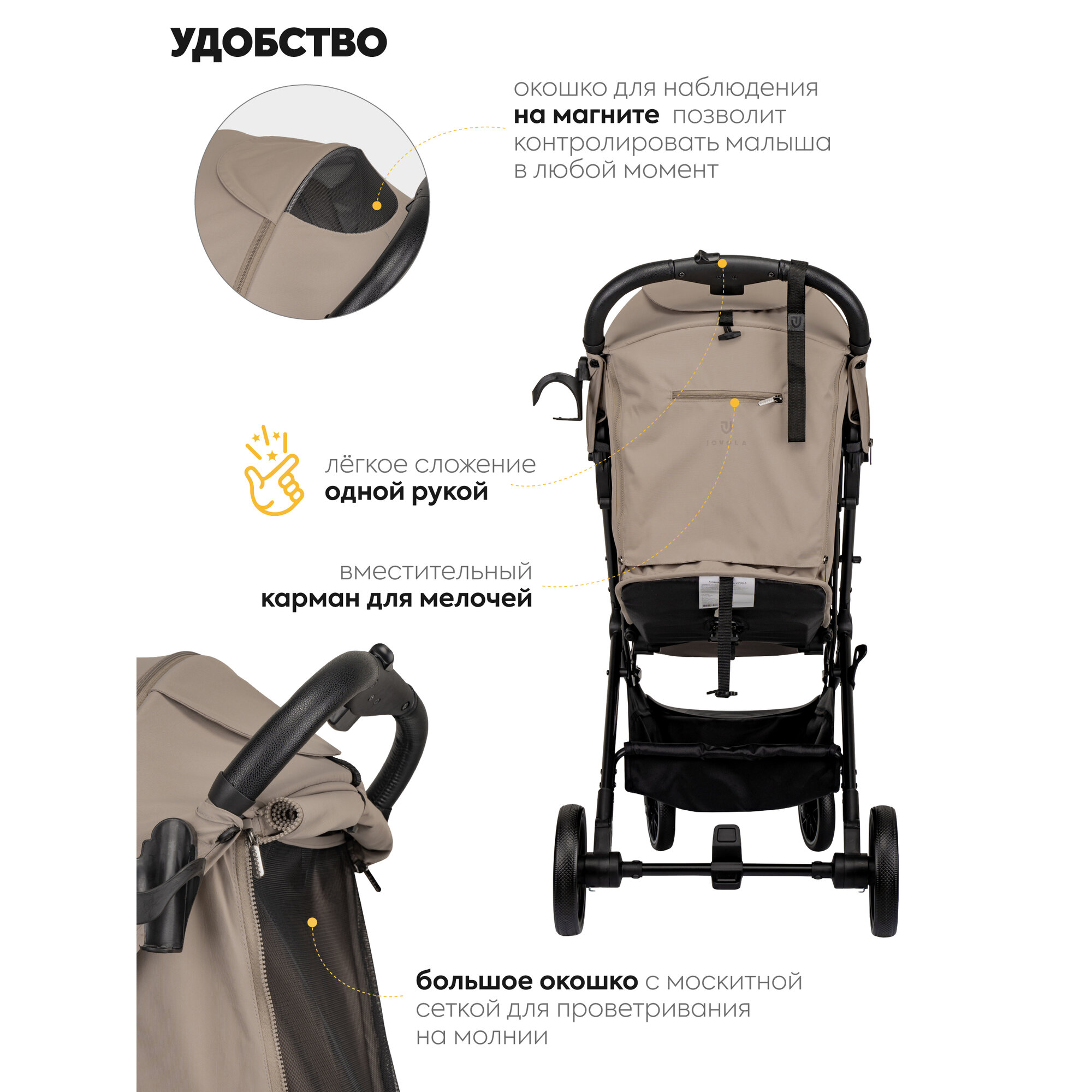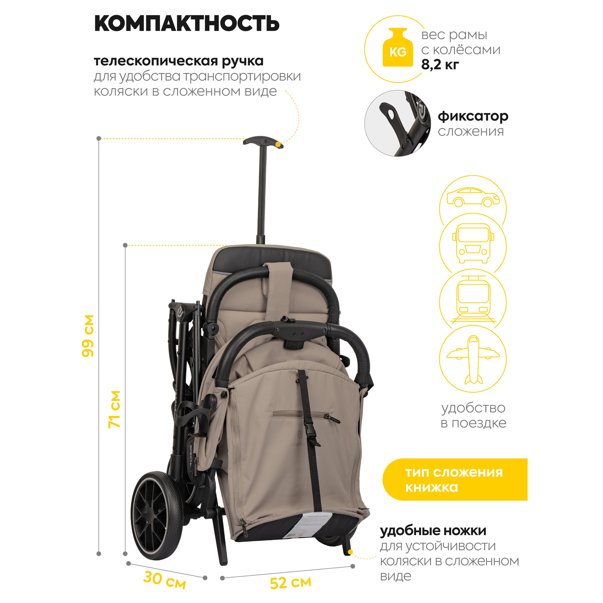 СохранитьКоляска прогулочная детская Jovola Specter легкая, для путешествий, с ручкой для транспортировки, бежевый интересное: