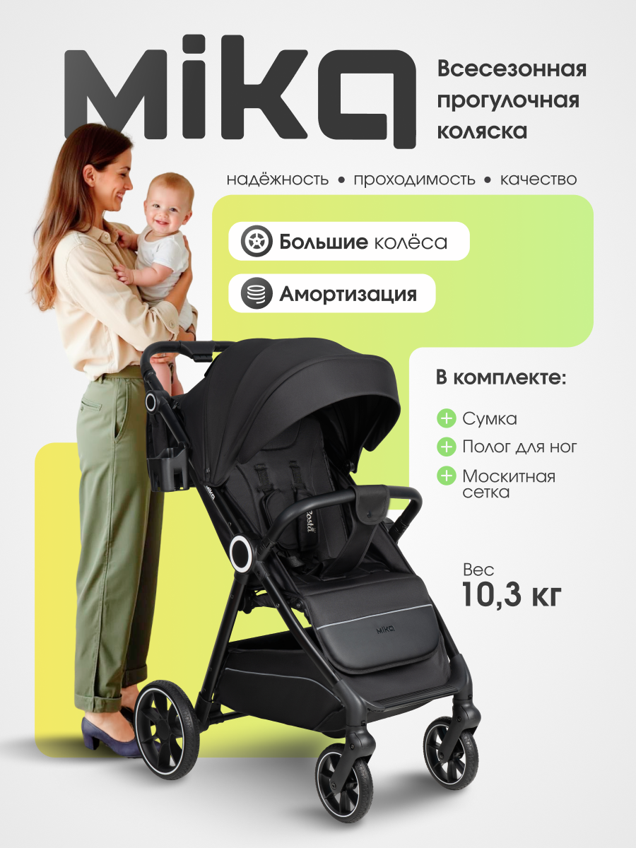 Коляска прогулочная Costa Mika, складная, всесезонная, черный интересное: