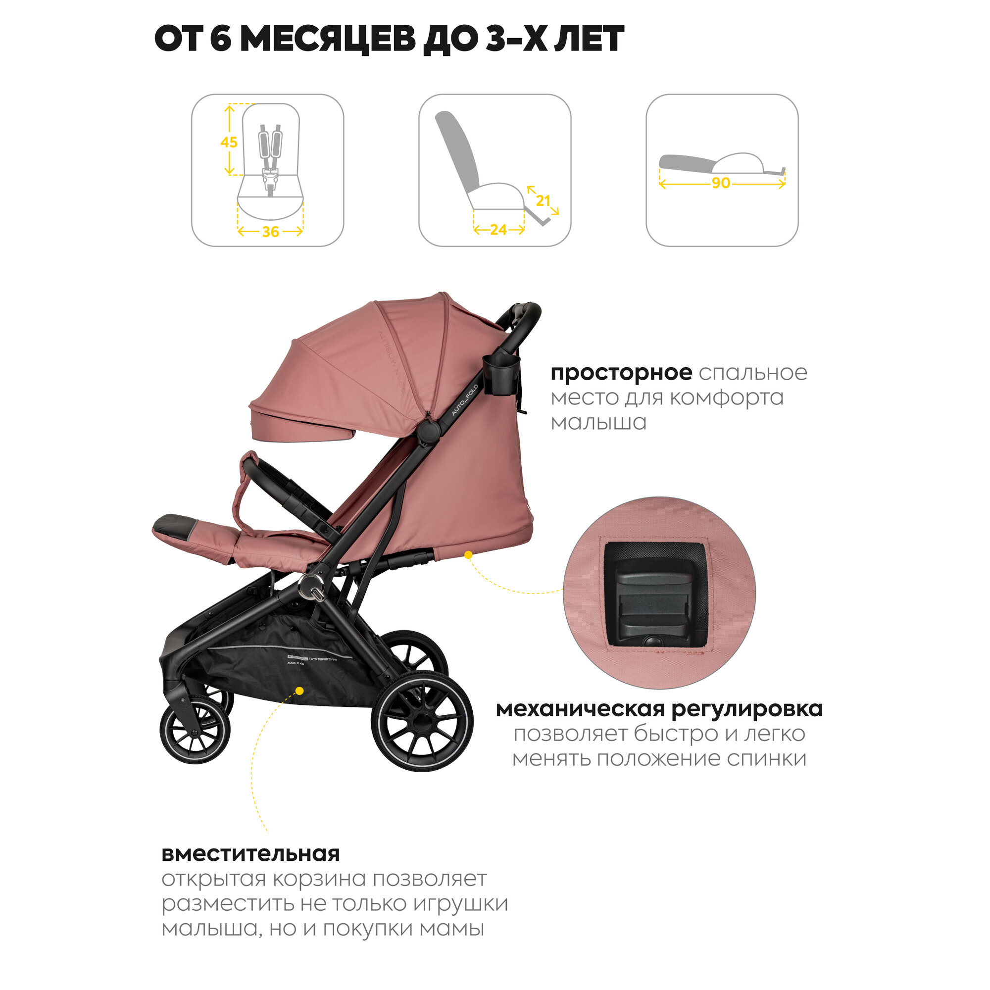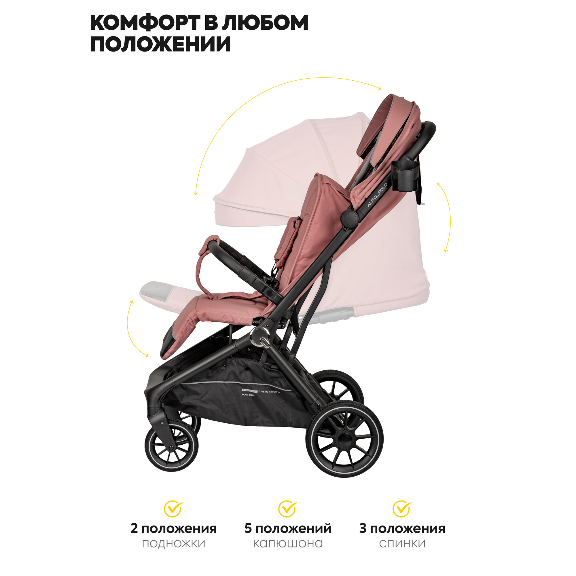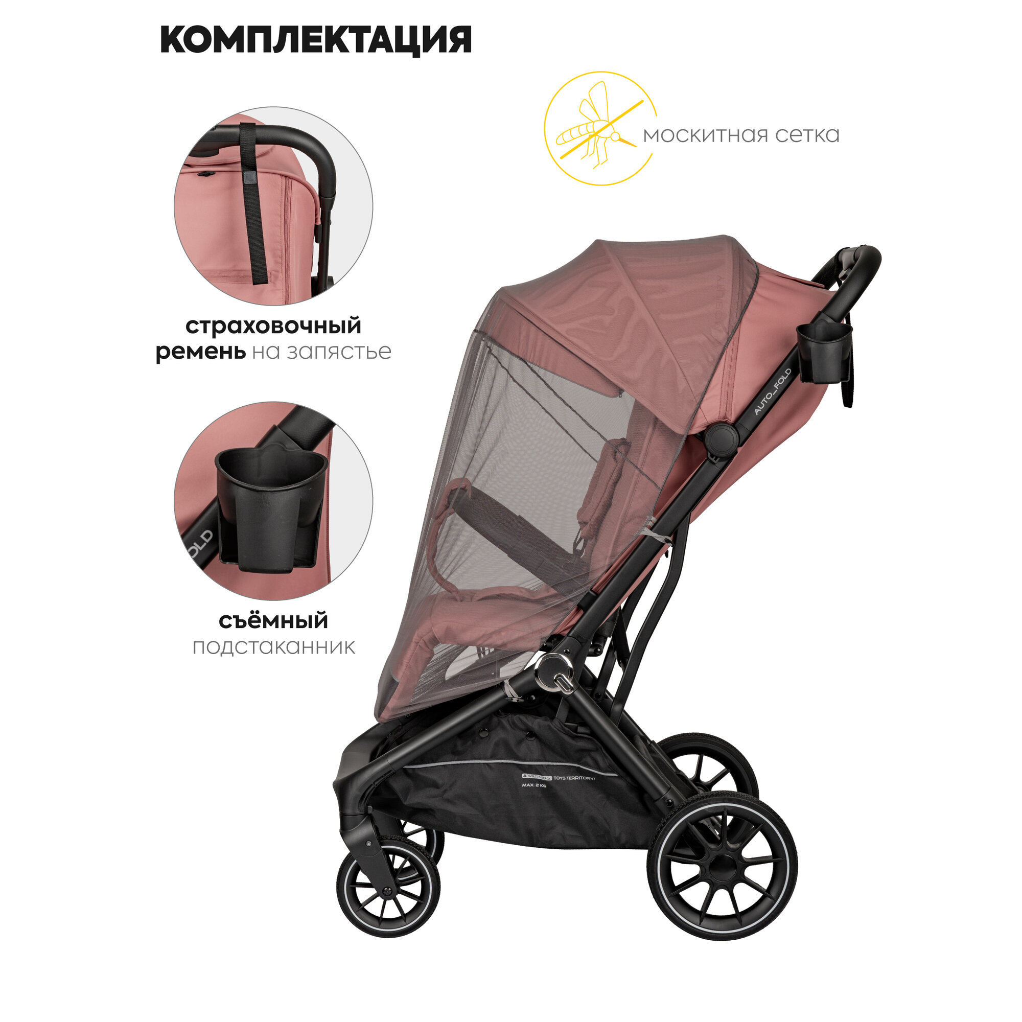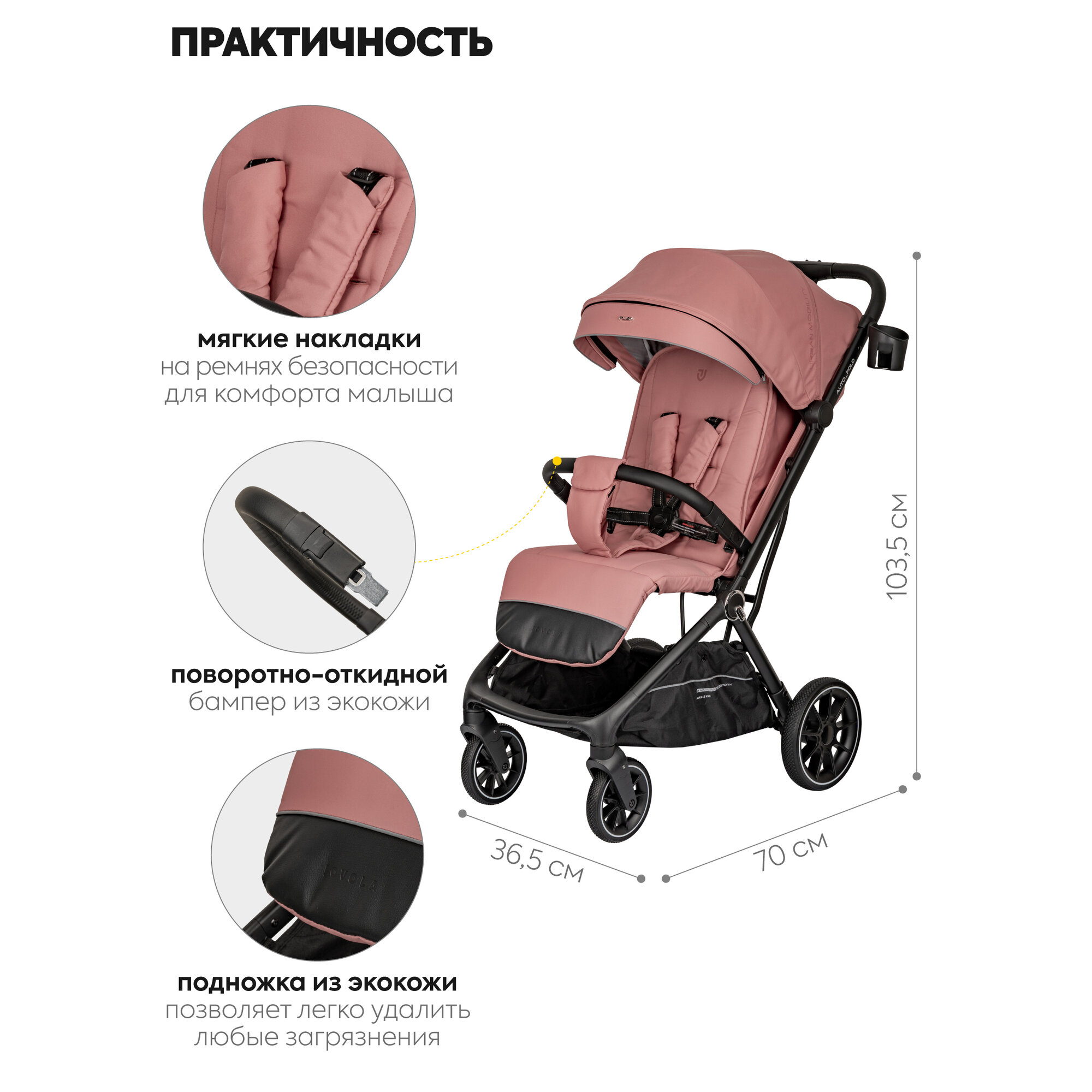 СохранитьКоляска прогулочная детская Jovola Flex легкая, с автосложением и ручкой для транспортировки, розовый интересное: