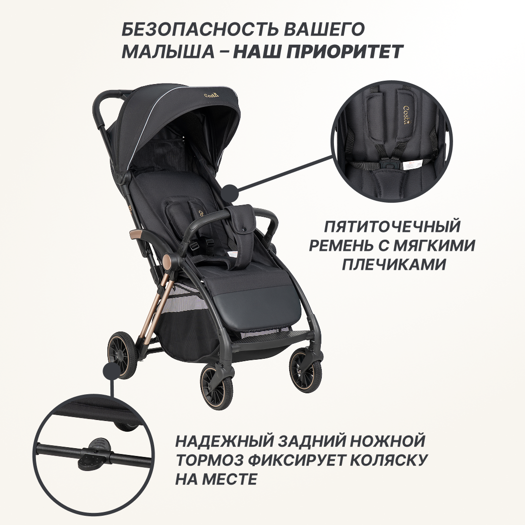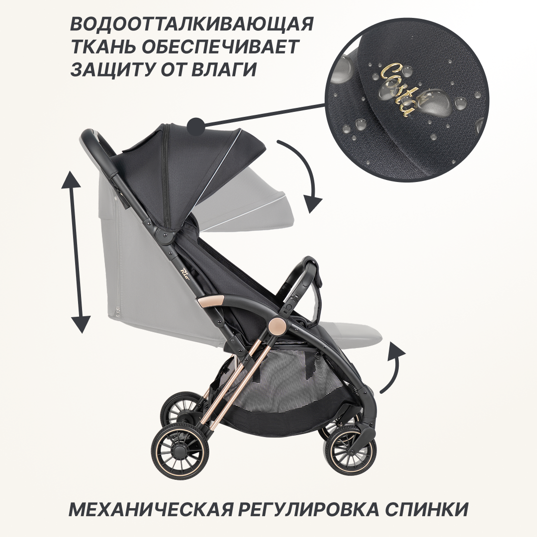 Коляска прогулочная детская самоскладывающаяся Costa Rio, черный интересное: