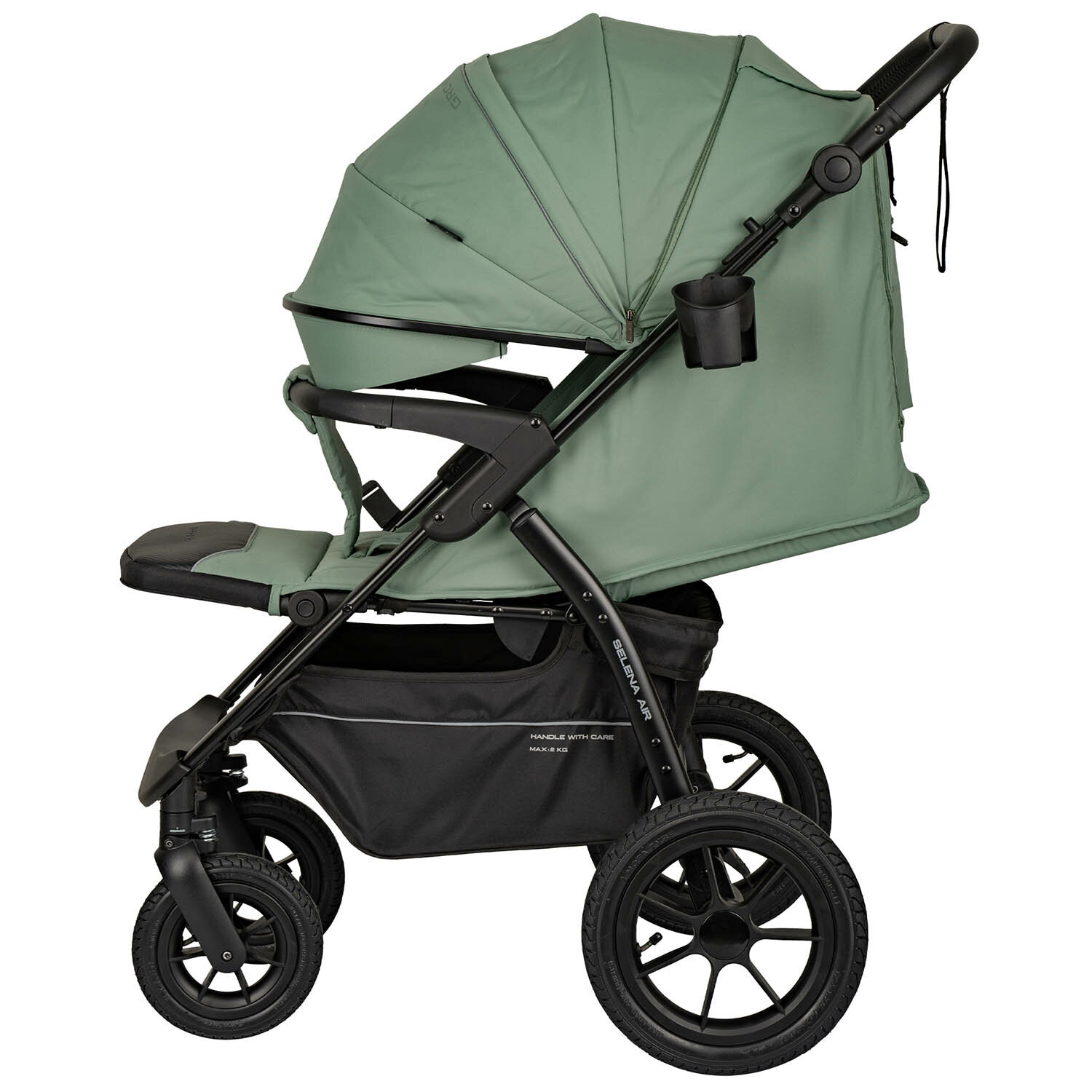 Коляска прогулочная детская Jovola Selena Air 2025 всесезонная, с надувными колесами и сумкой, зеленый-серый