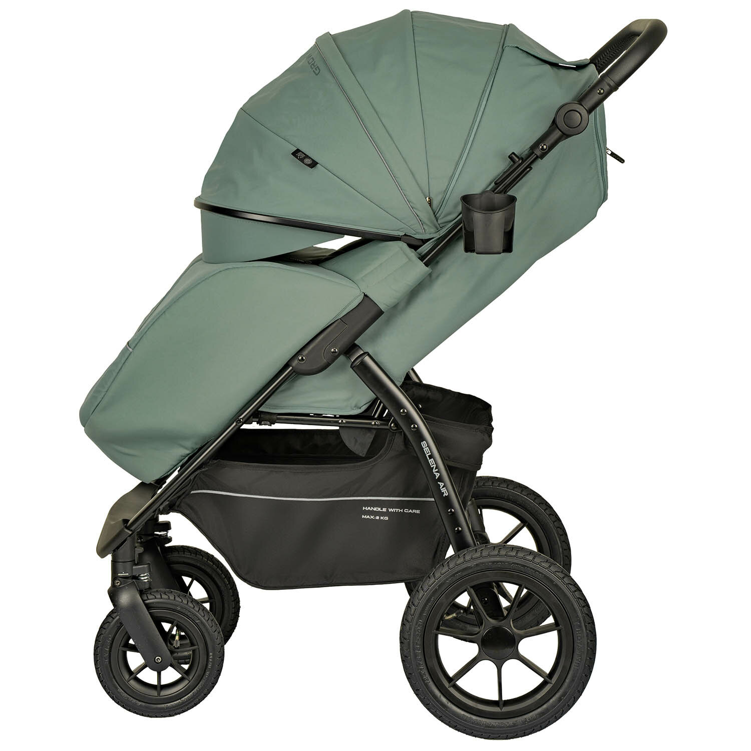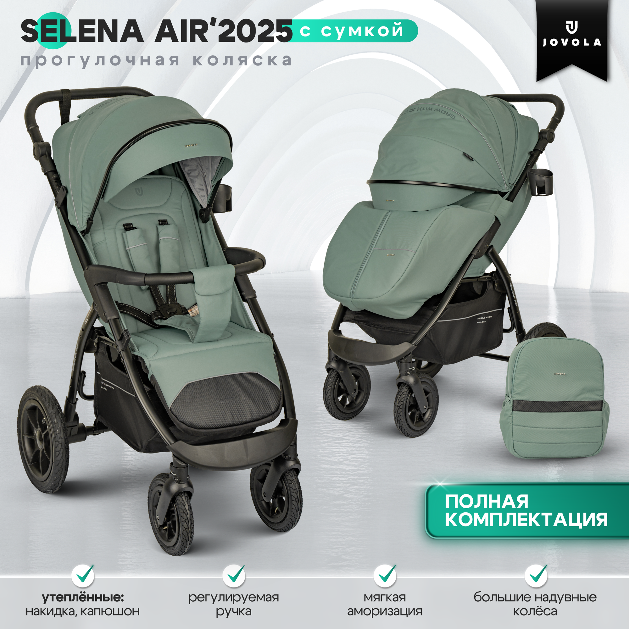 Коляска прогулочная детская Jovola Selena Air 2025 всесезонная, с надувными колесами и сумкой, зеленый