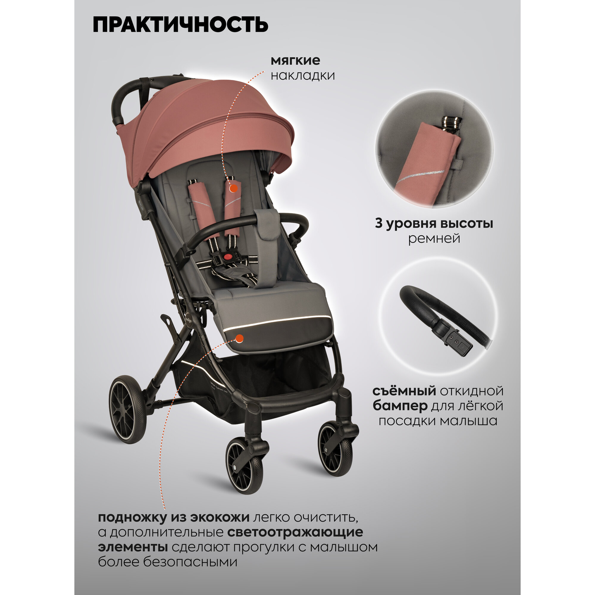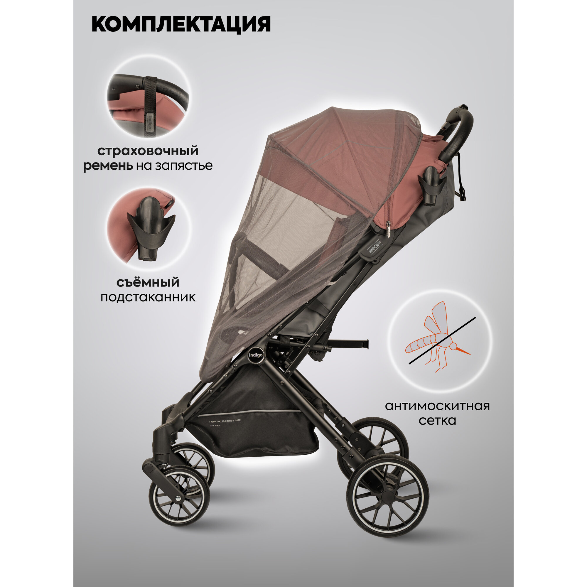 Коляска детская прогулочная Indigo Skip легкая, с автосложением, розовый интересное: