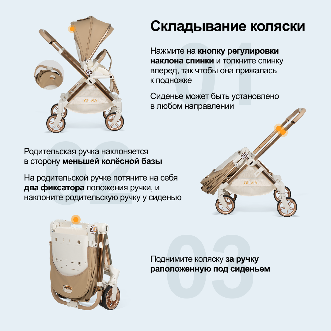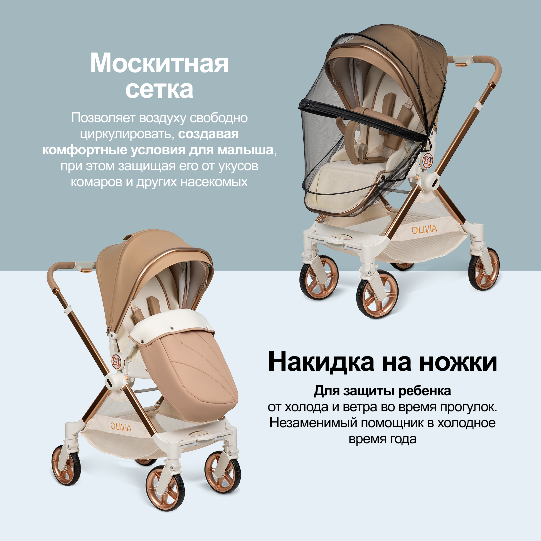 Прогулочная коляска с перекидной ручкой Farfello Olivia, кварцевый песок интересное: