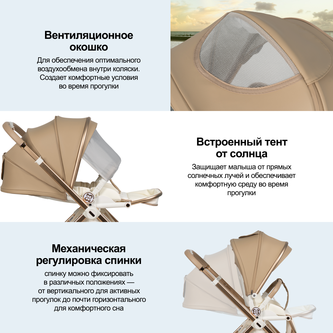 Детская коляска 2 в 1 Luxmom COBABE 6300L, бежевый
