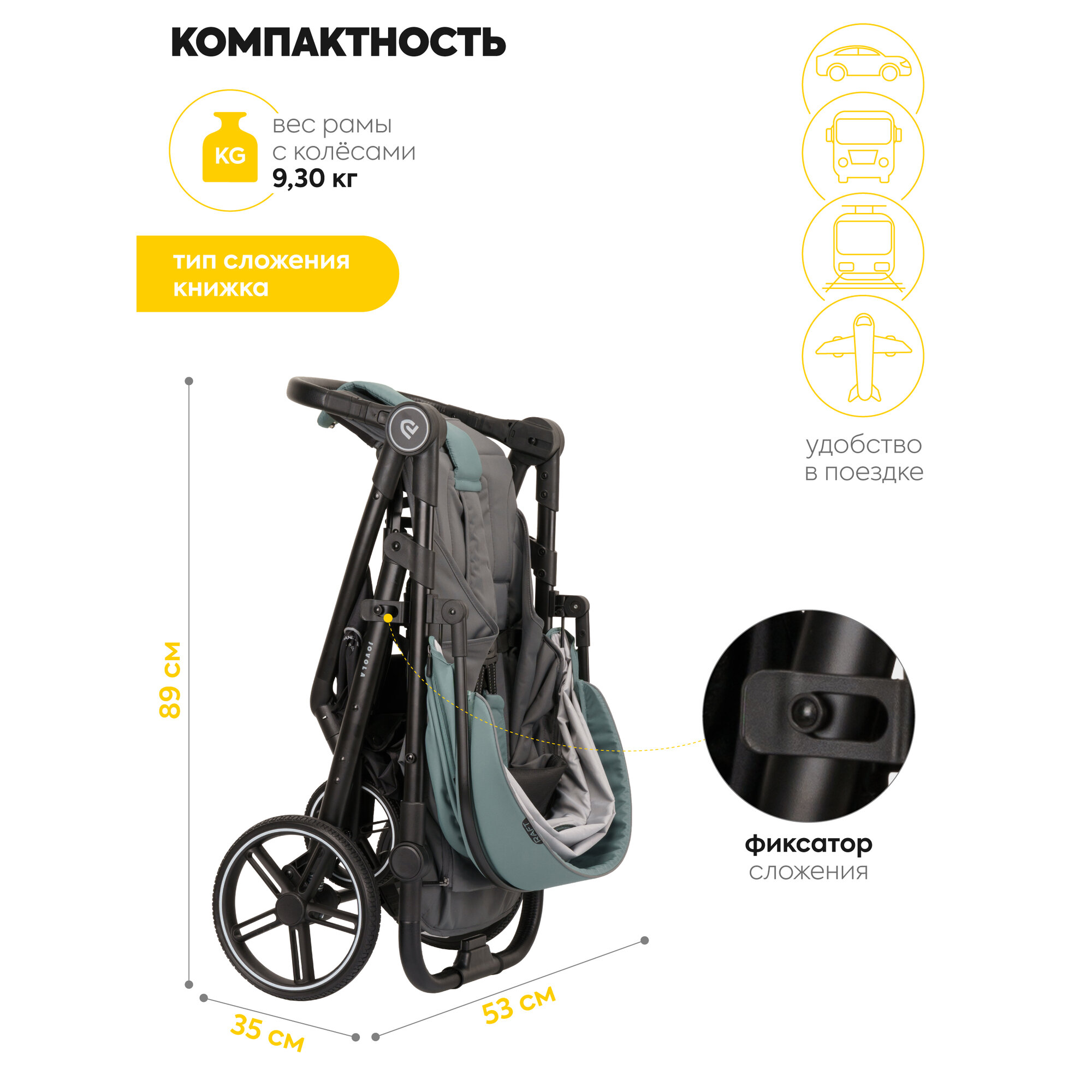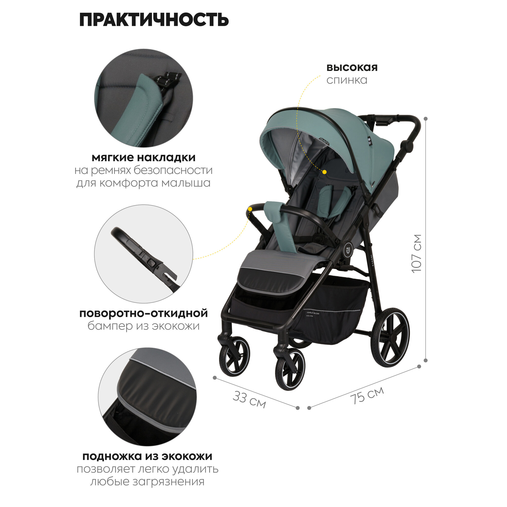 Коляска прогулочная детская Jovola Raft всесезонная, складная, зеленый интересное: