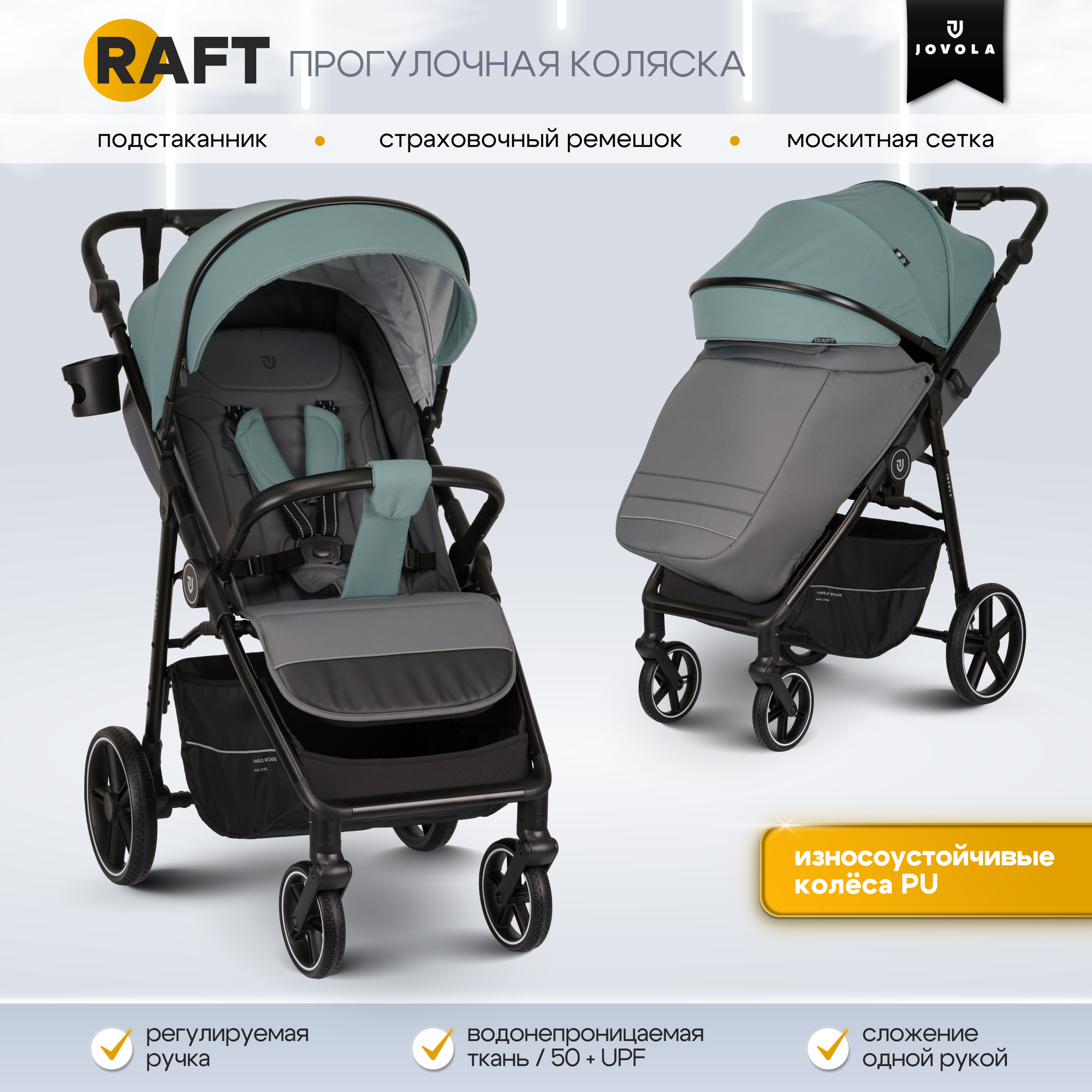 Ниже Вы можете прочитать отзывы на Коляска прогулочная детская Jovola Raft всесезонная, складная, зеленый, ознакомится с подробными характеристиками, посмотреть интересные обзоры и фотографии на Коляска прогулочная детская Jovola Raft всесезонная, складная, зеленый.