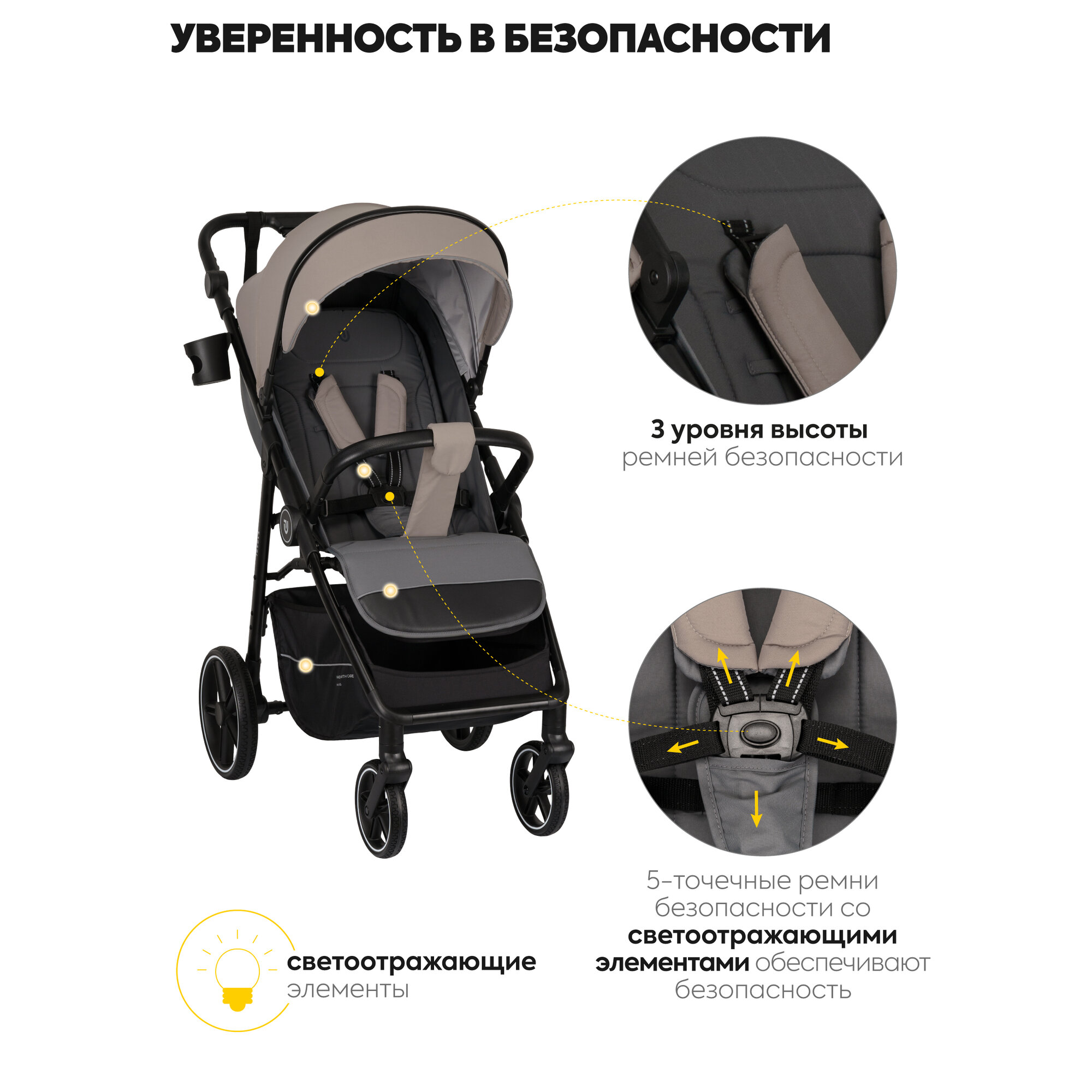 Коляска прогулочная детская Jovola Raft всесезонная, складная, бежевый интересное: