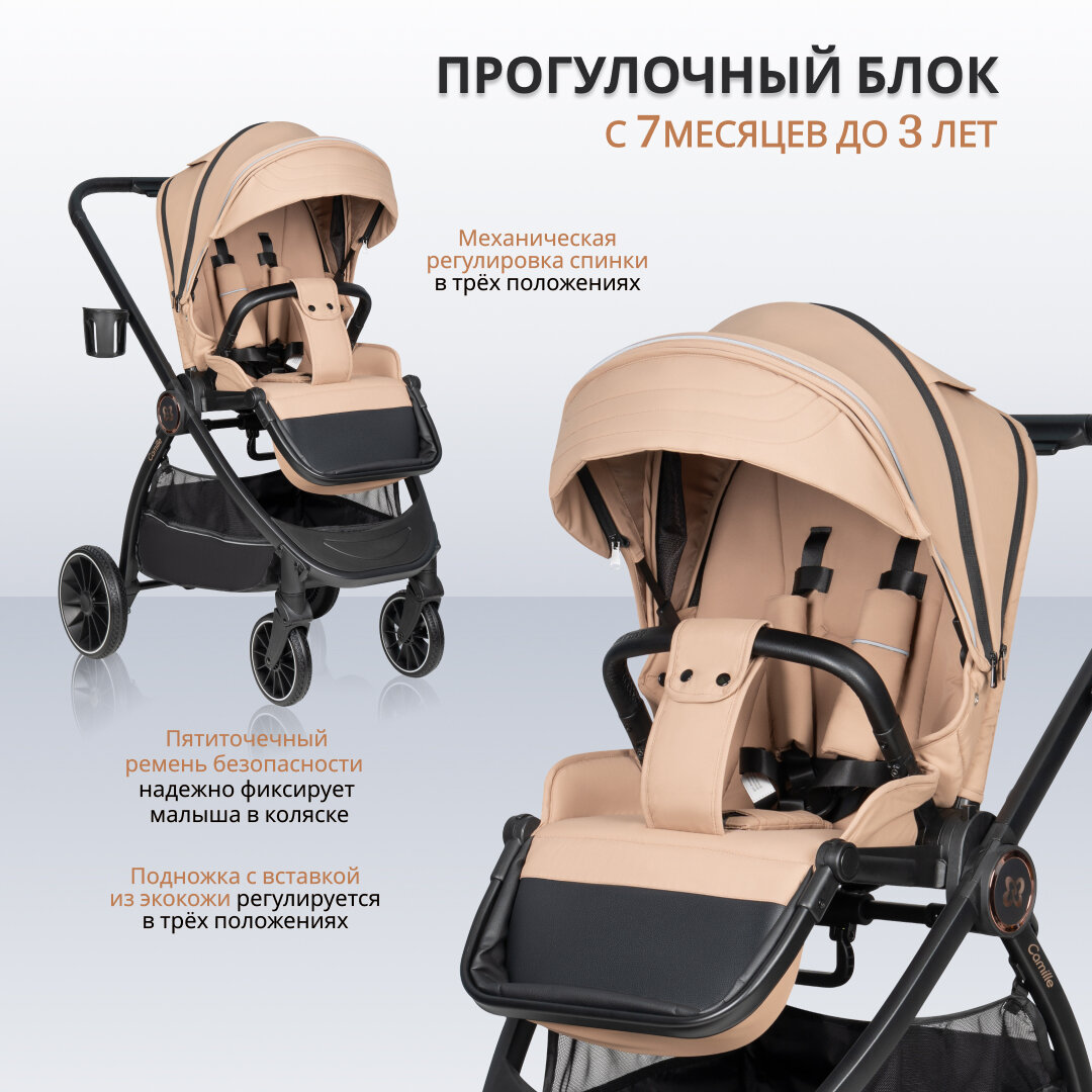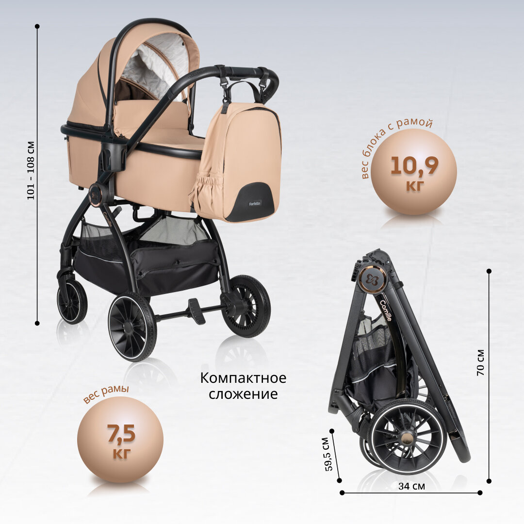 Коляска 3 в 1 для новорожденных всесезонная Farfello Camille, новый бежевый интересное: