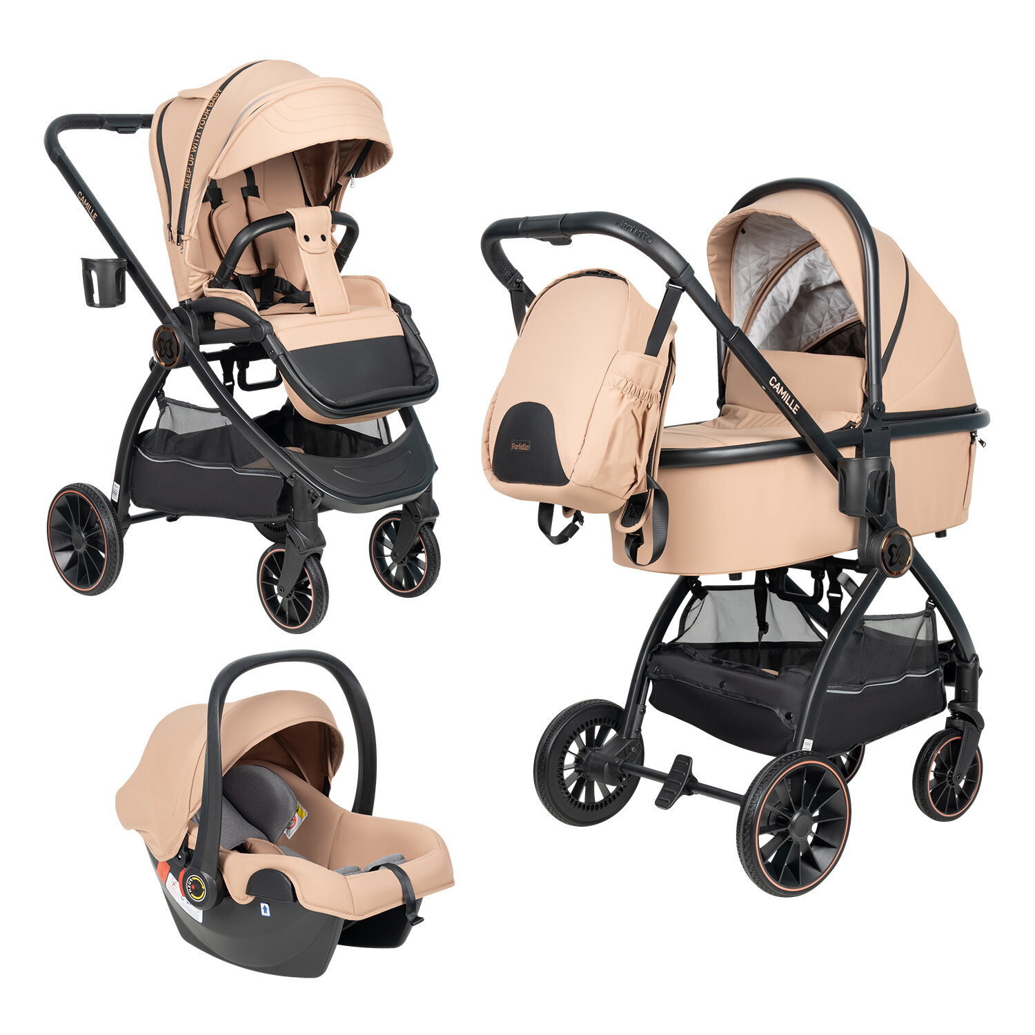 Купить Коляска 3 в 1 для новорожденных всесезонная Farfello Camille, новый бежевый