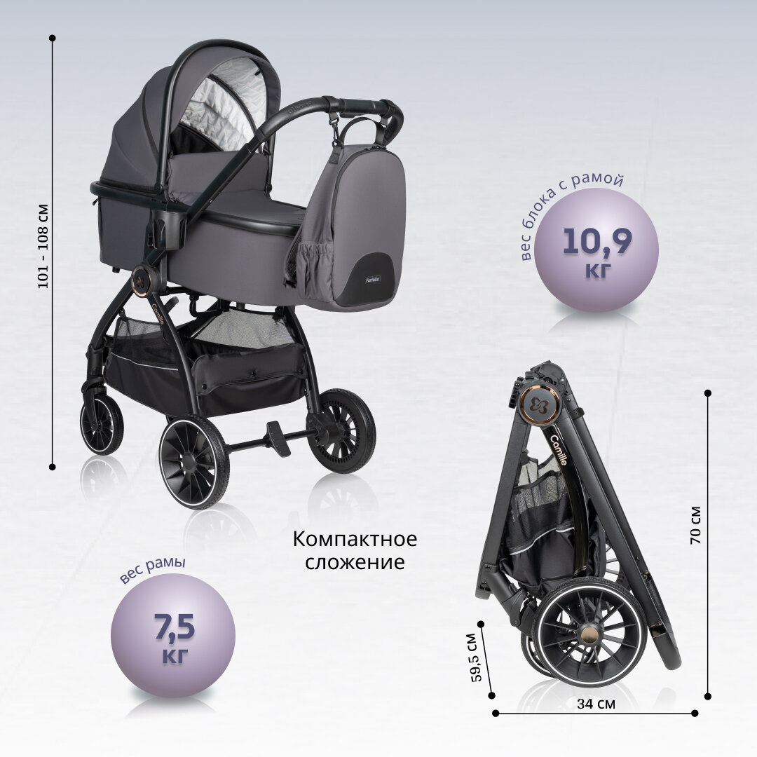 Коляска 3 в 1 для новорожденных всесезонная Farfello Camille, серый интересное: