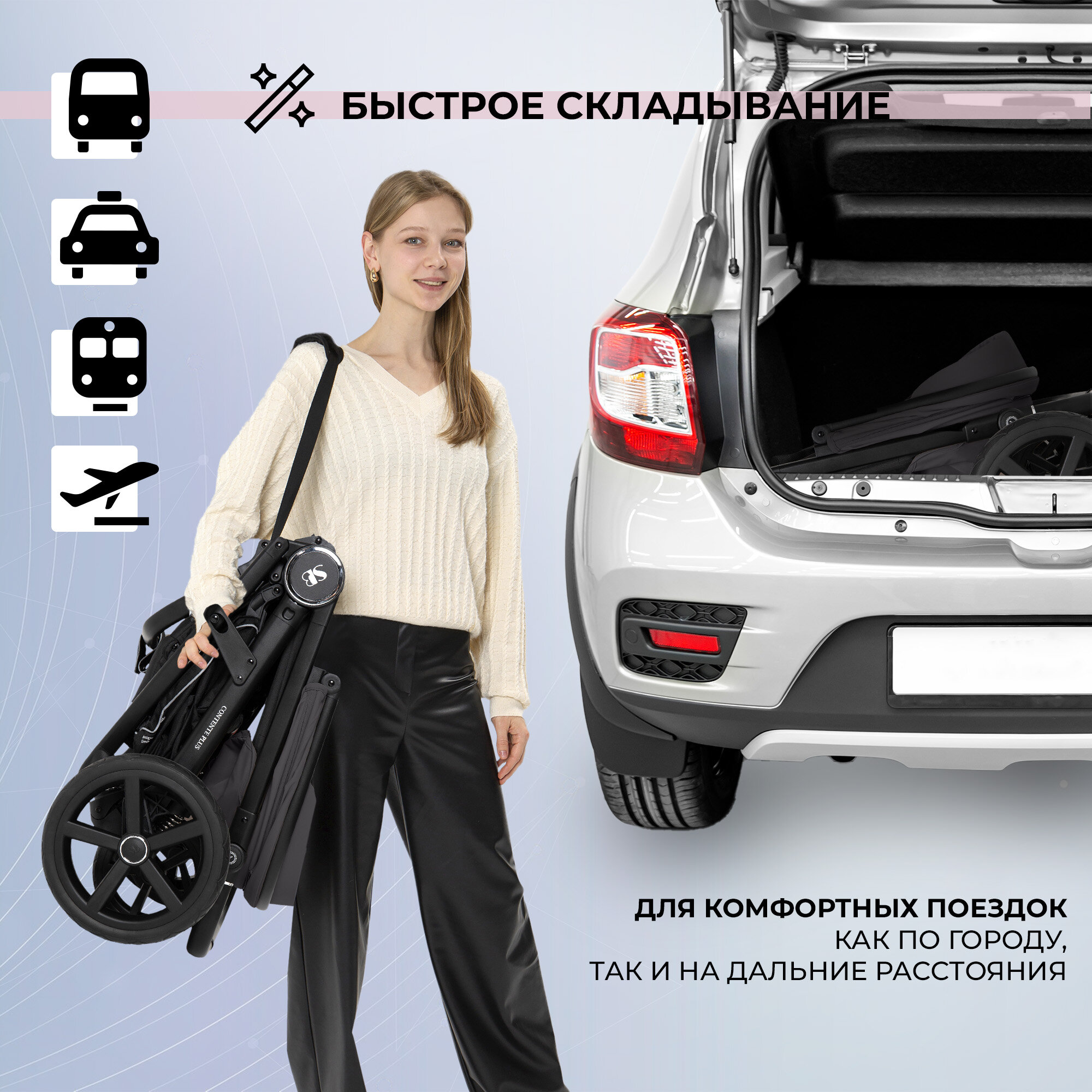 Прогулочная коляска Sweet Baby Contente Plus Grey интересное: