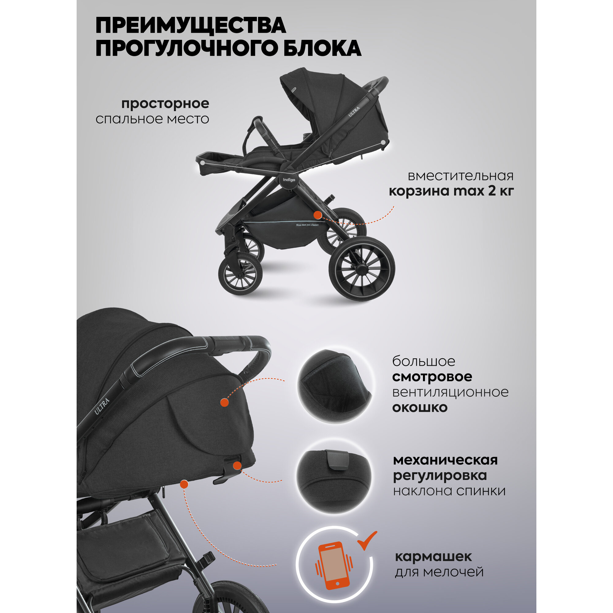 Коляска 3в1 Indigo ULTRA универсальная с автолюлькой, черный интересное: