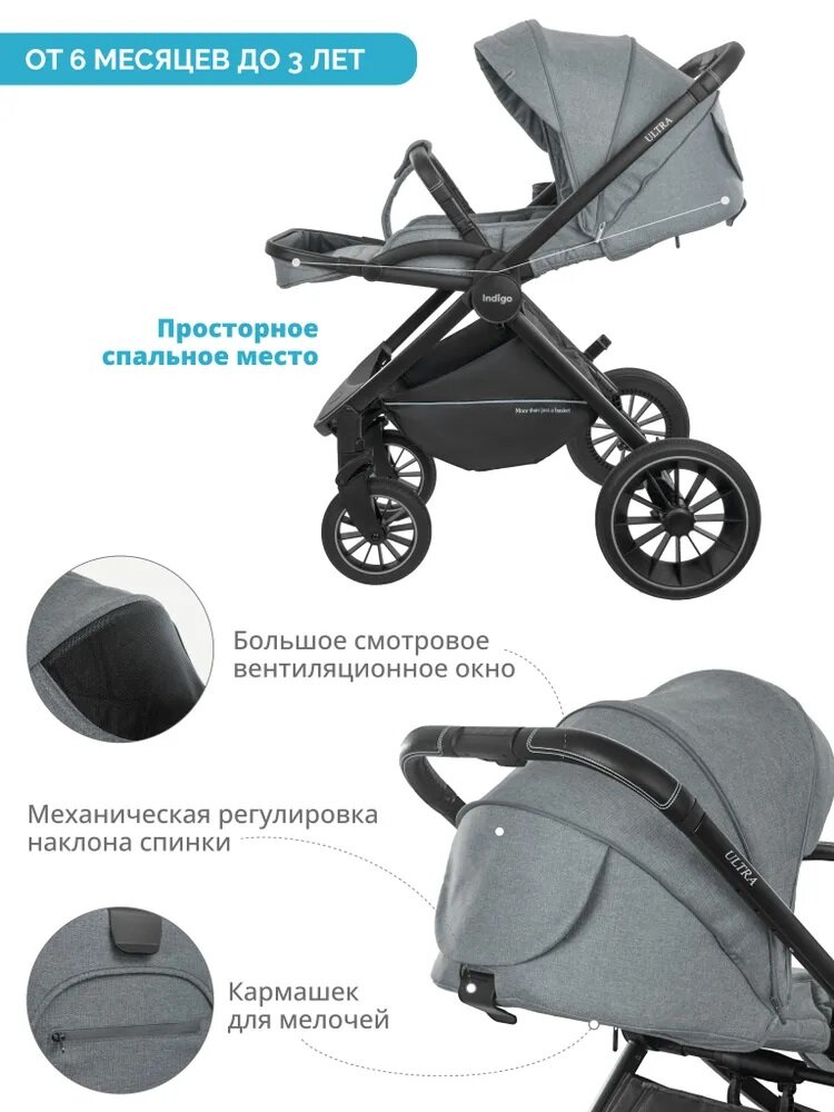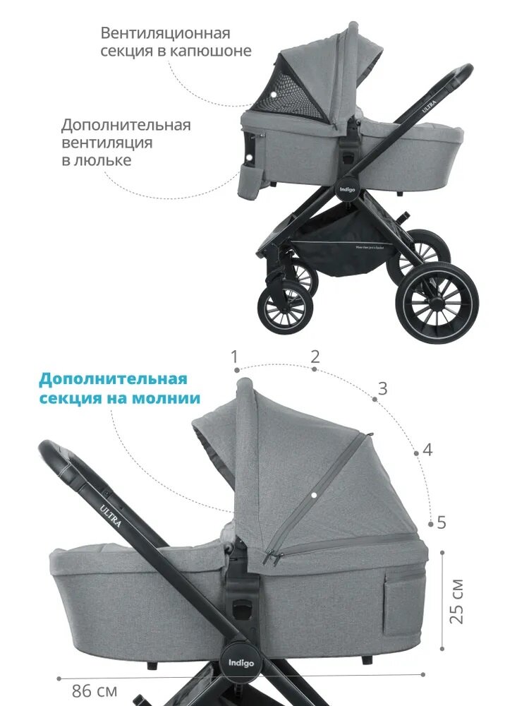 Коляска 3 в 1 Indigo Ultra, серый интересное:
