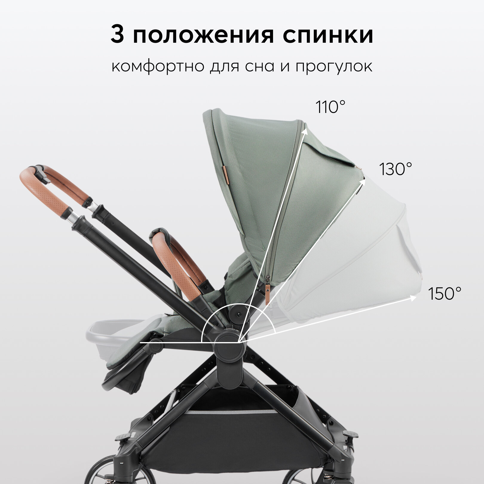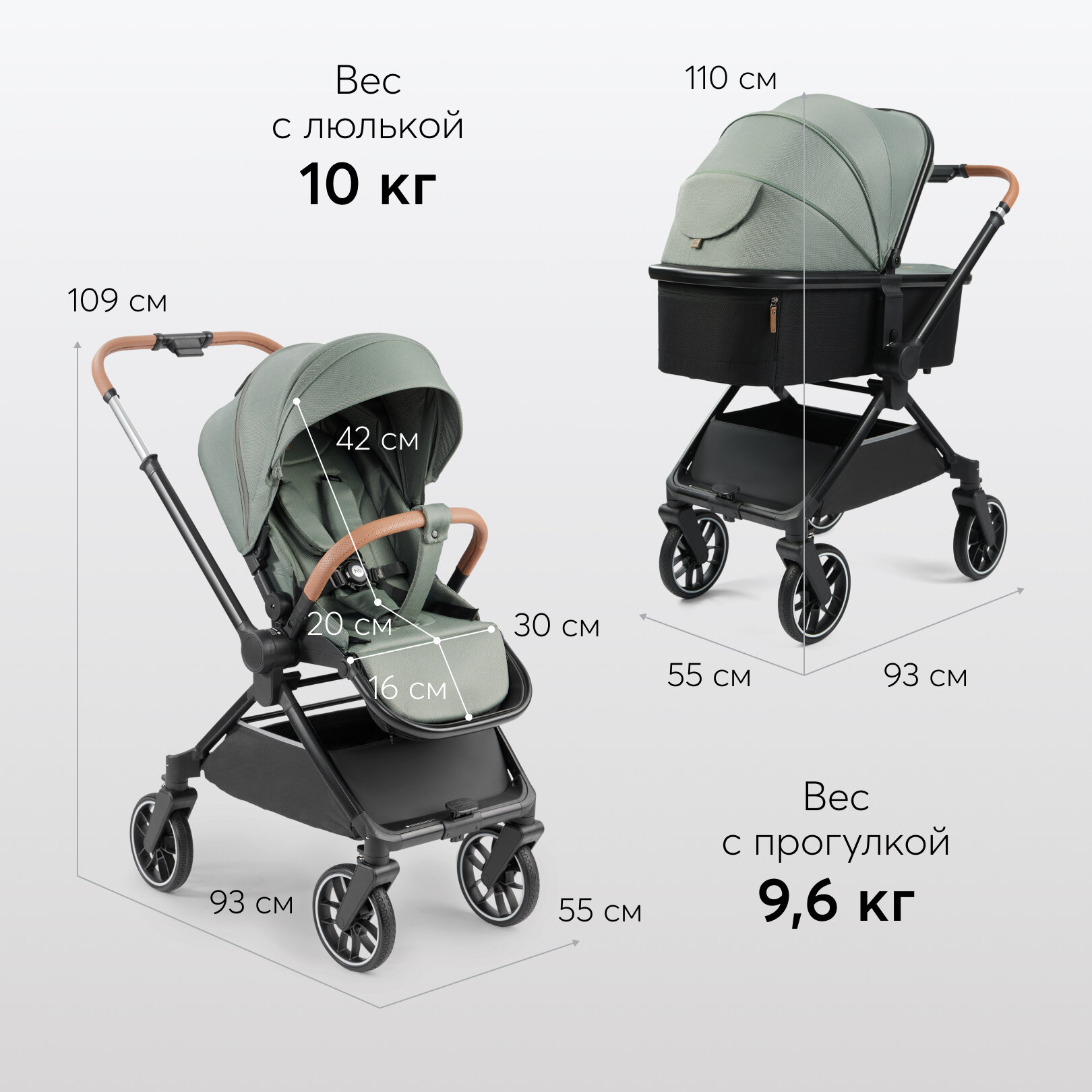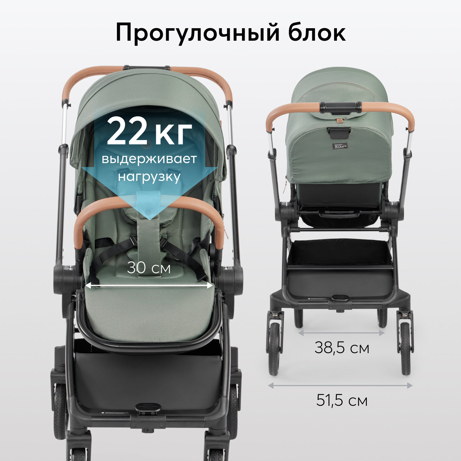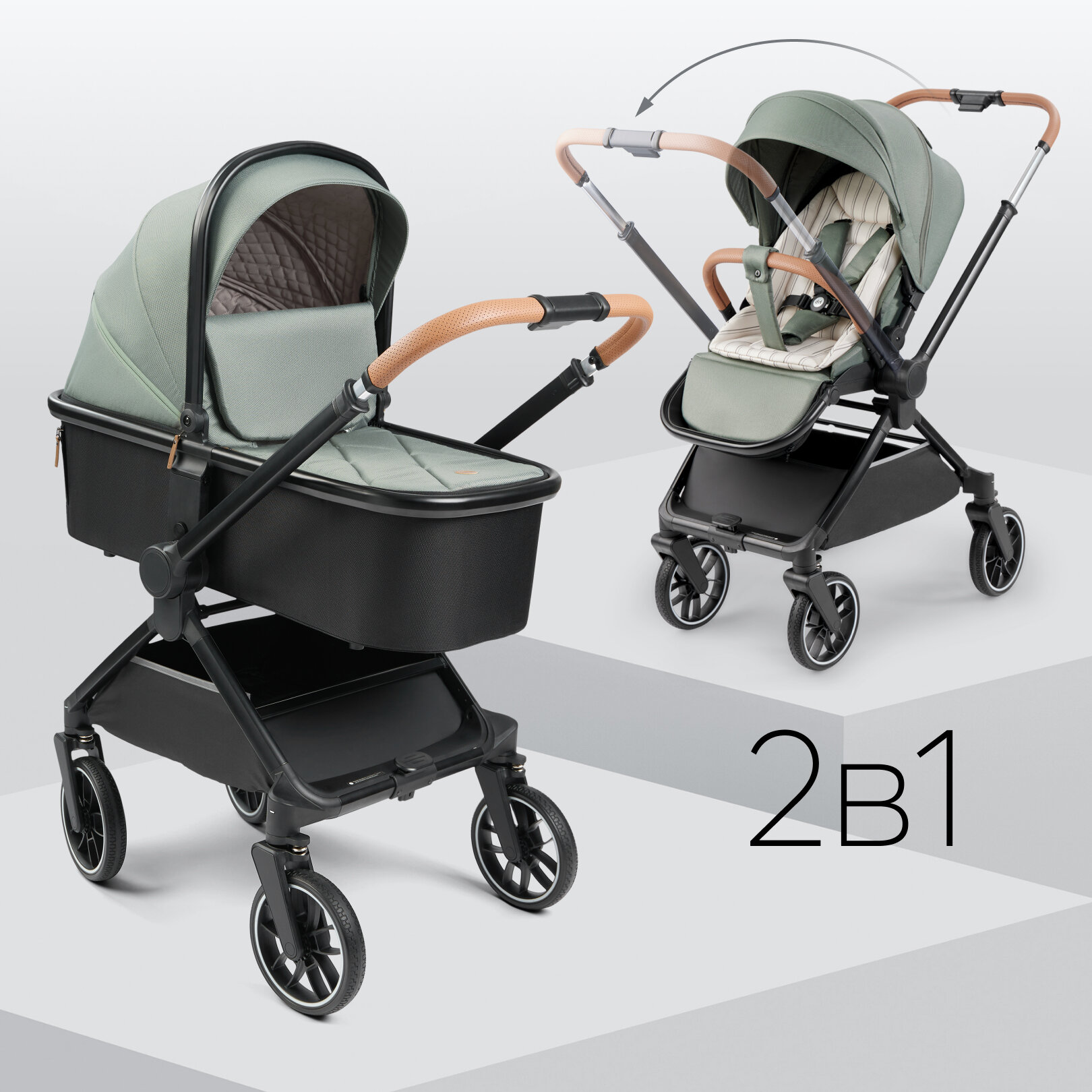 Коляска для новорожденных трансформер CELINE PRO Happy Baby, большие колеса, люлька и прогулочный блок до 22 кг, зеленая интересное: