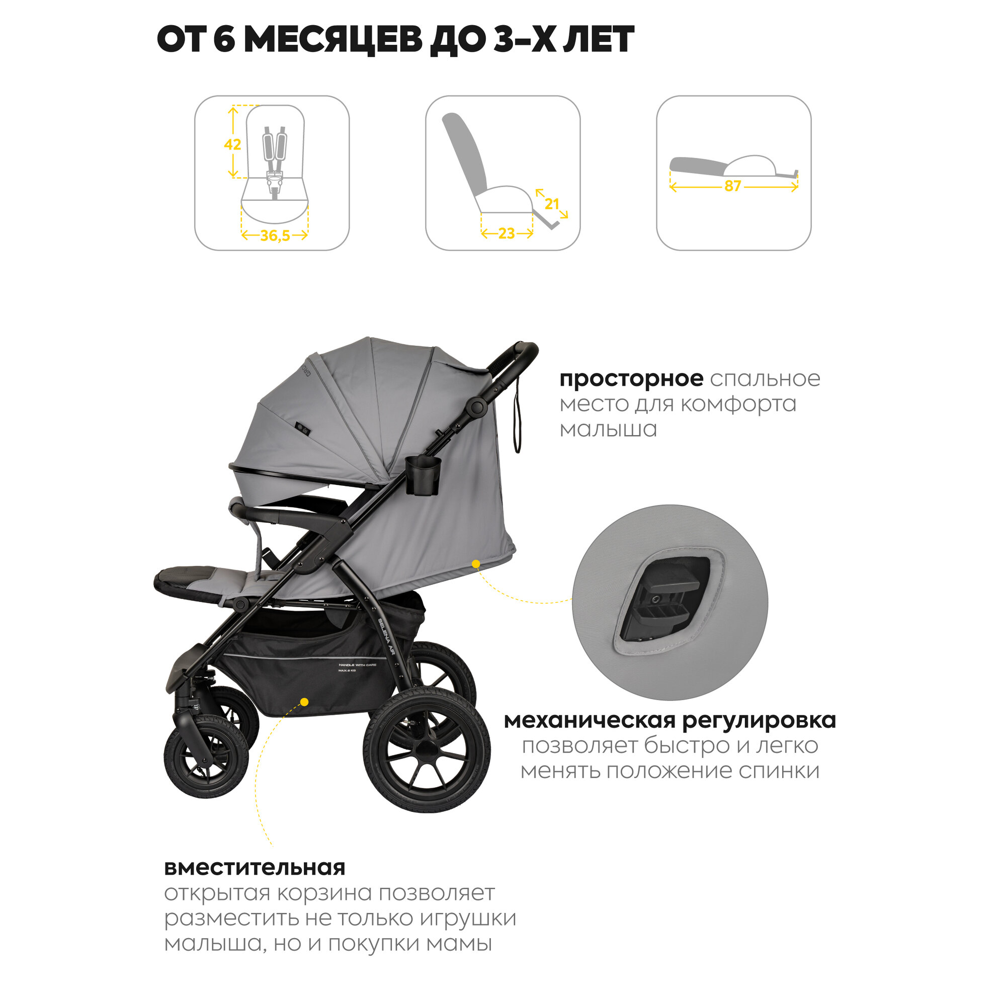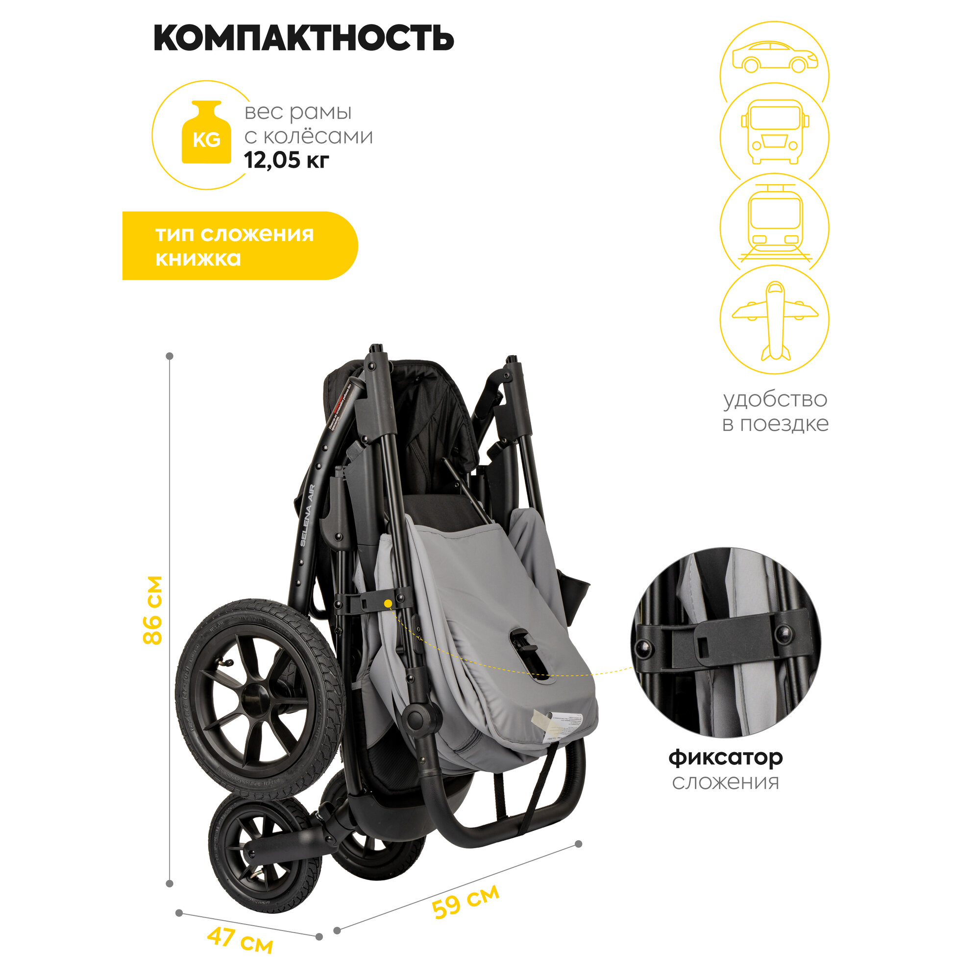 СохранитьКоляска прогулочная детская Jovola Selena Air 2025 с большими колесами, всесезонная, складная, светло-серый интересное: