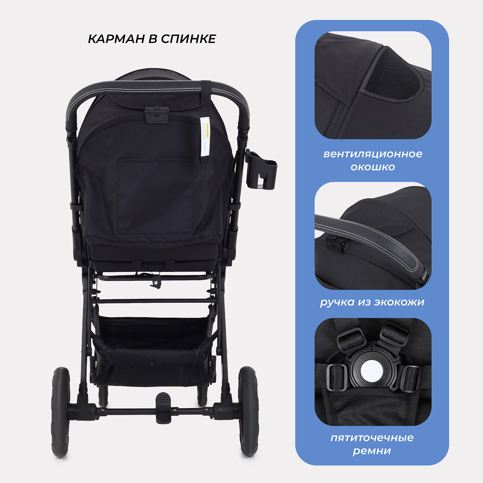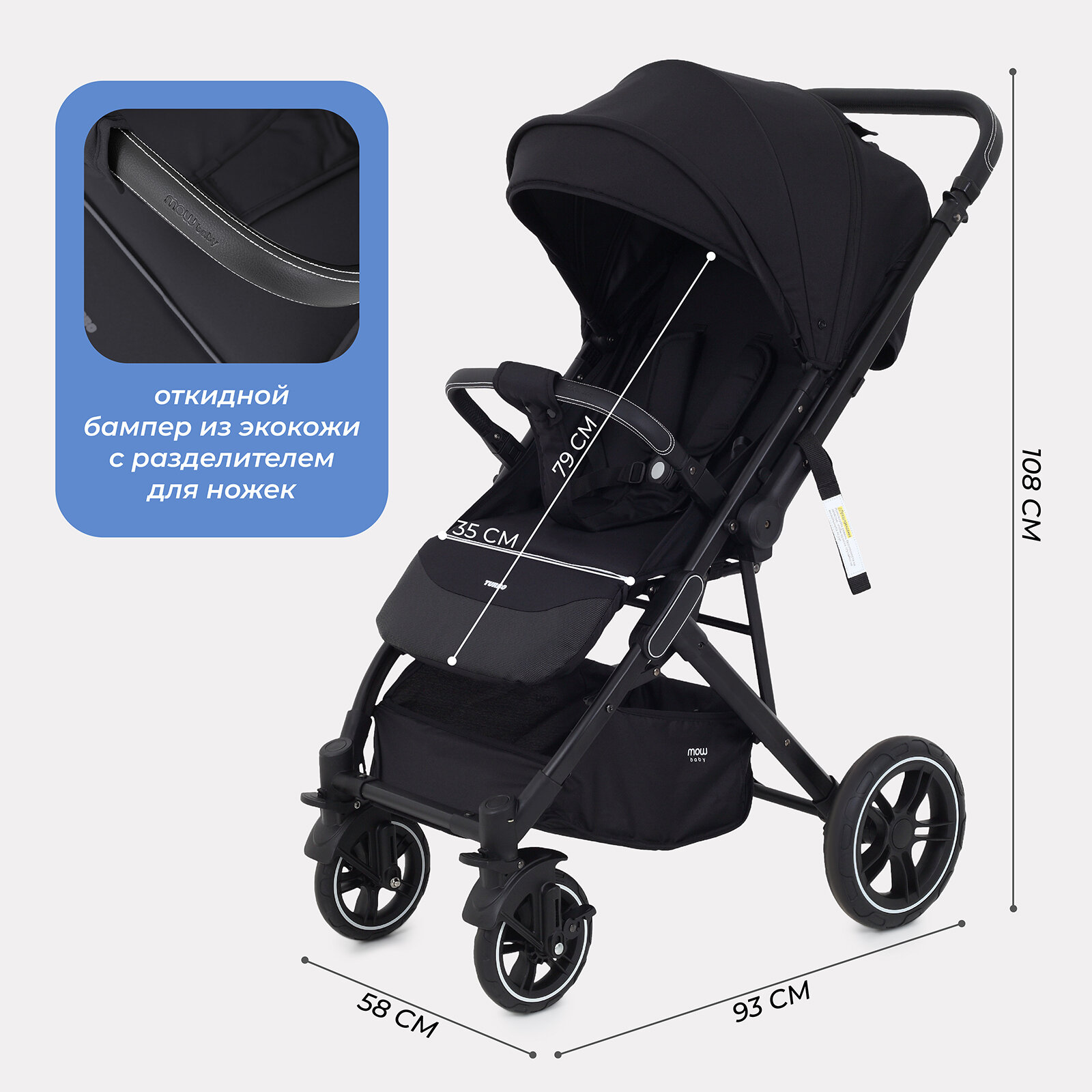 Коляска прогулочная всесезонная MOWBaby "TURBO 2.0" MB021 Black интересное: