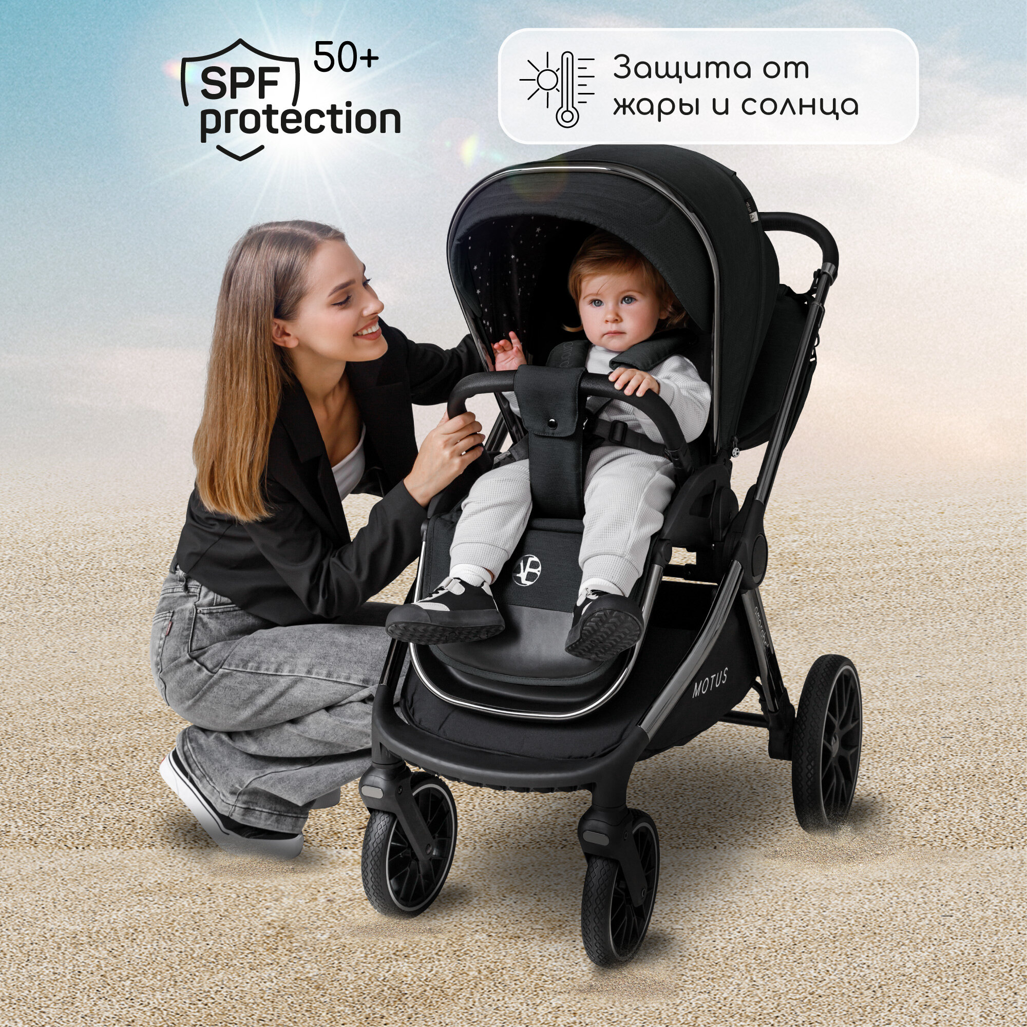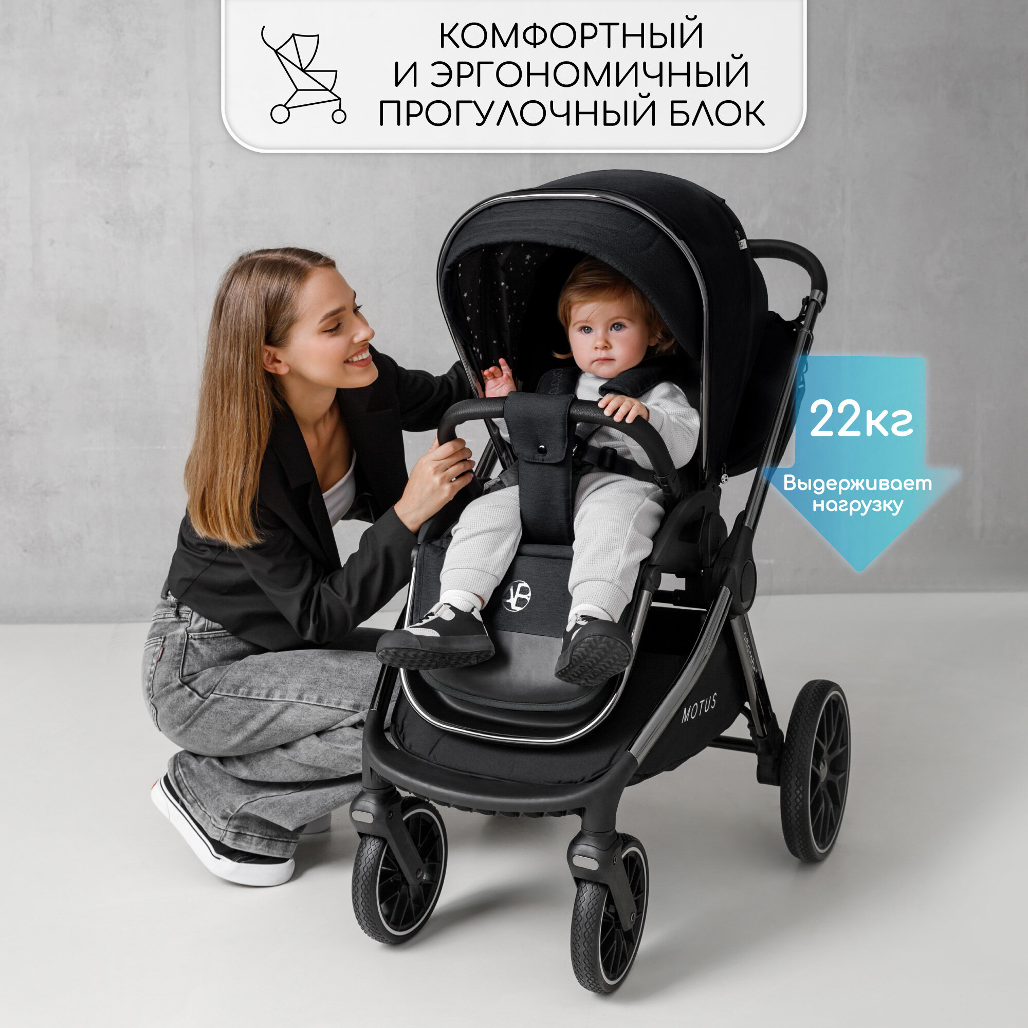 Коляска детская 2 в 1 Amarobaby Motus, черный интересное: