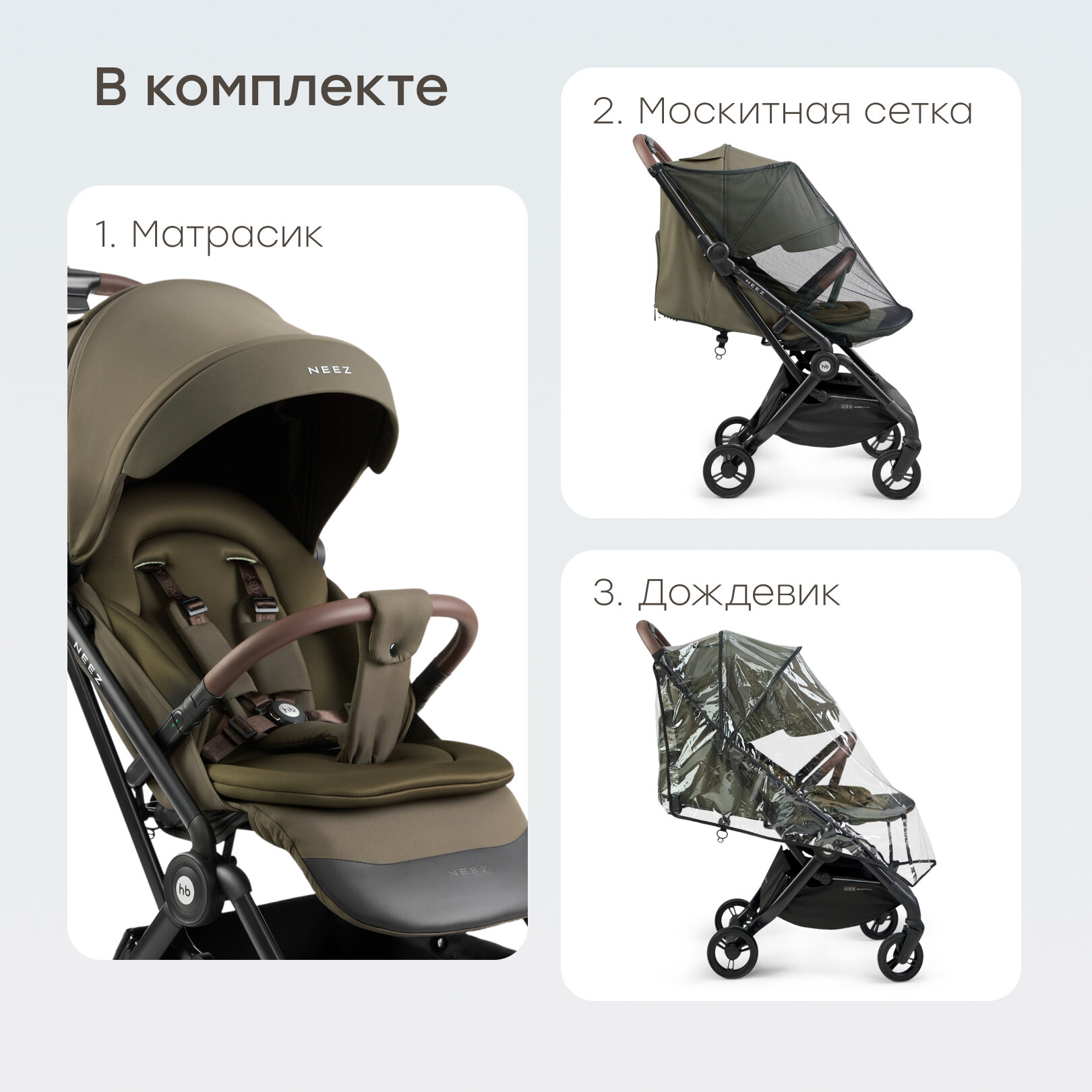 Коляска прогулочная Neez от Happy Baby, коляска детская прогулочная всесезонная, в комплекте: дождевик, москитная сетка, матрасик, темно-зеленая интересное: