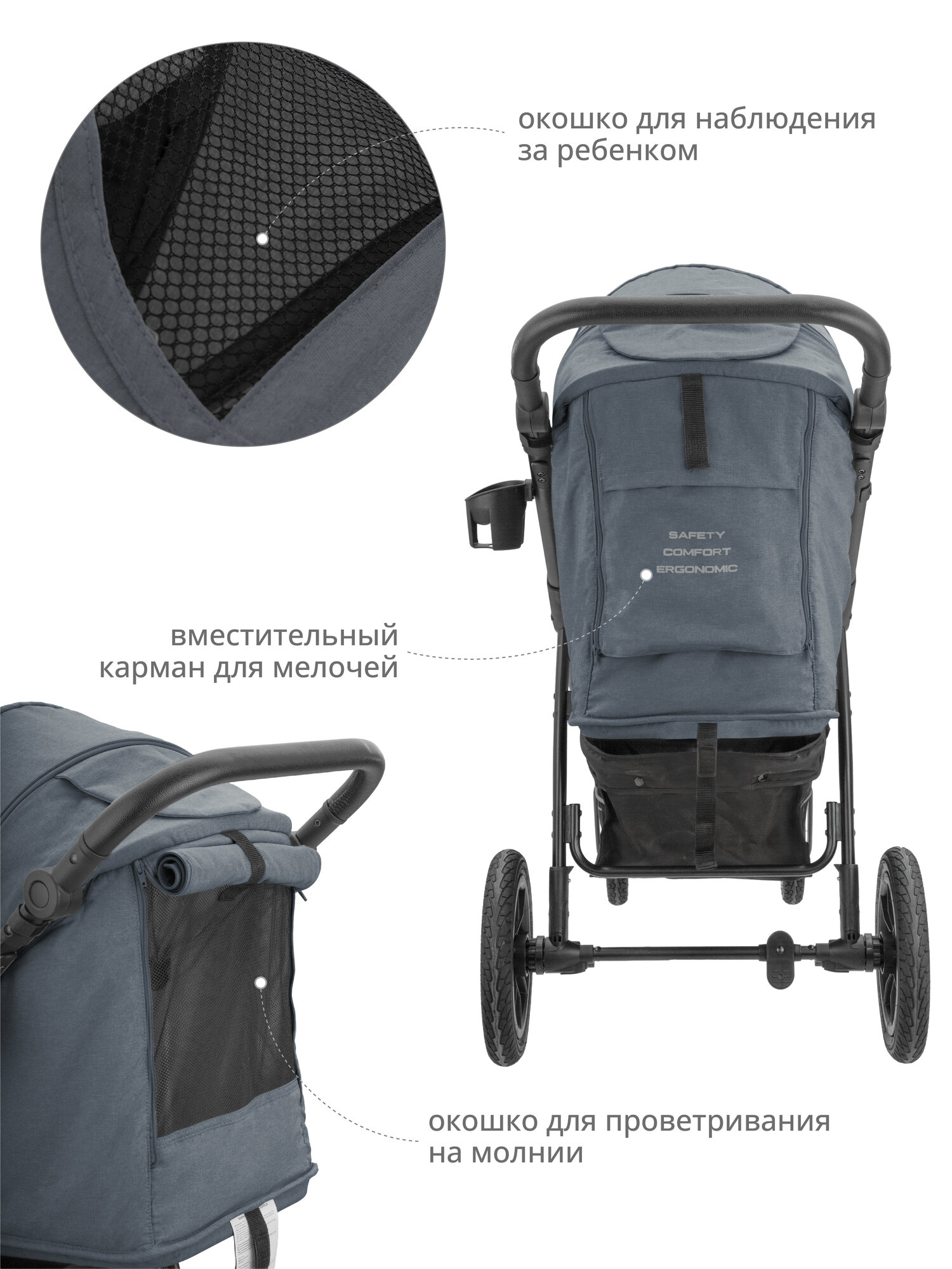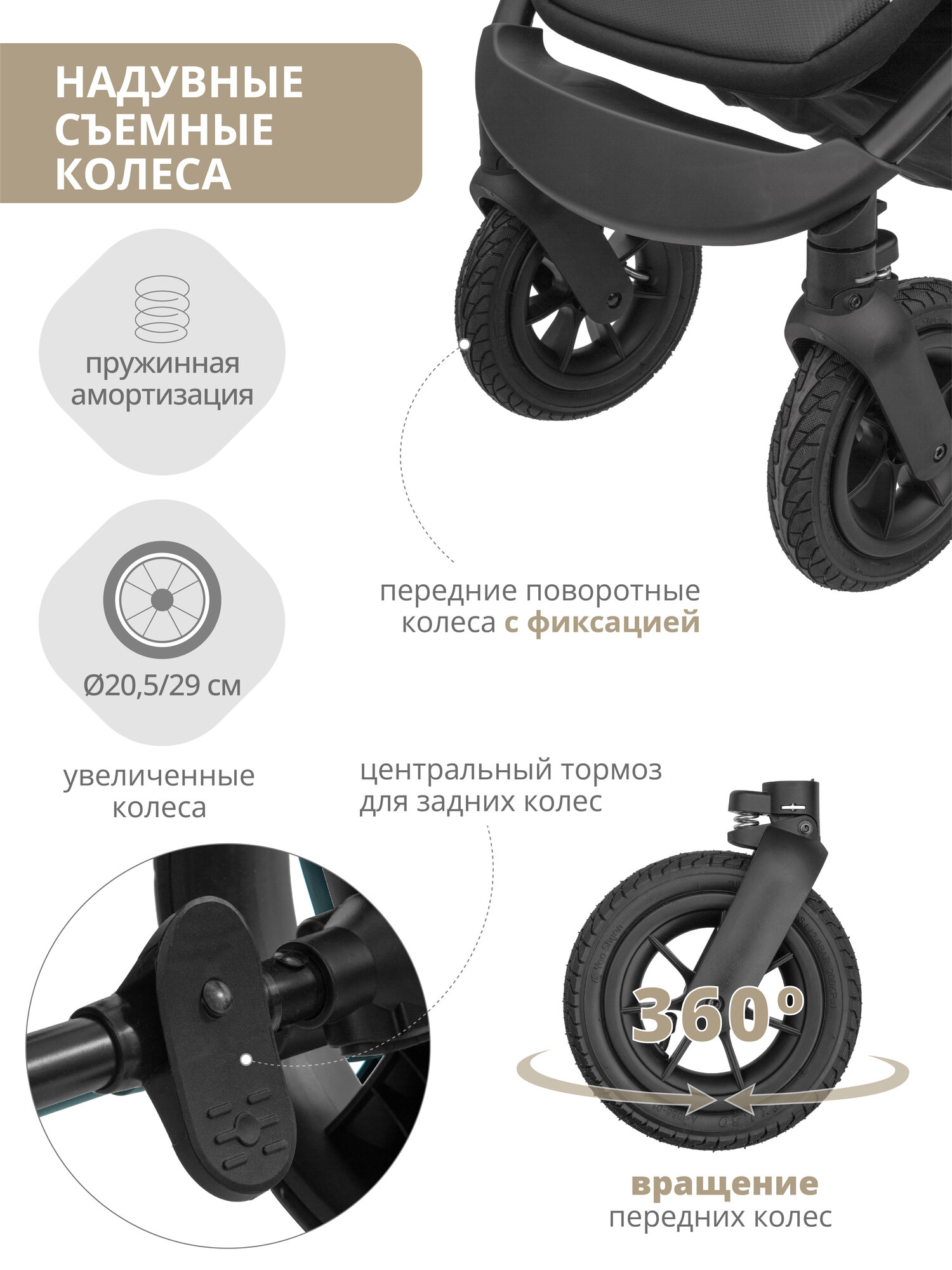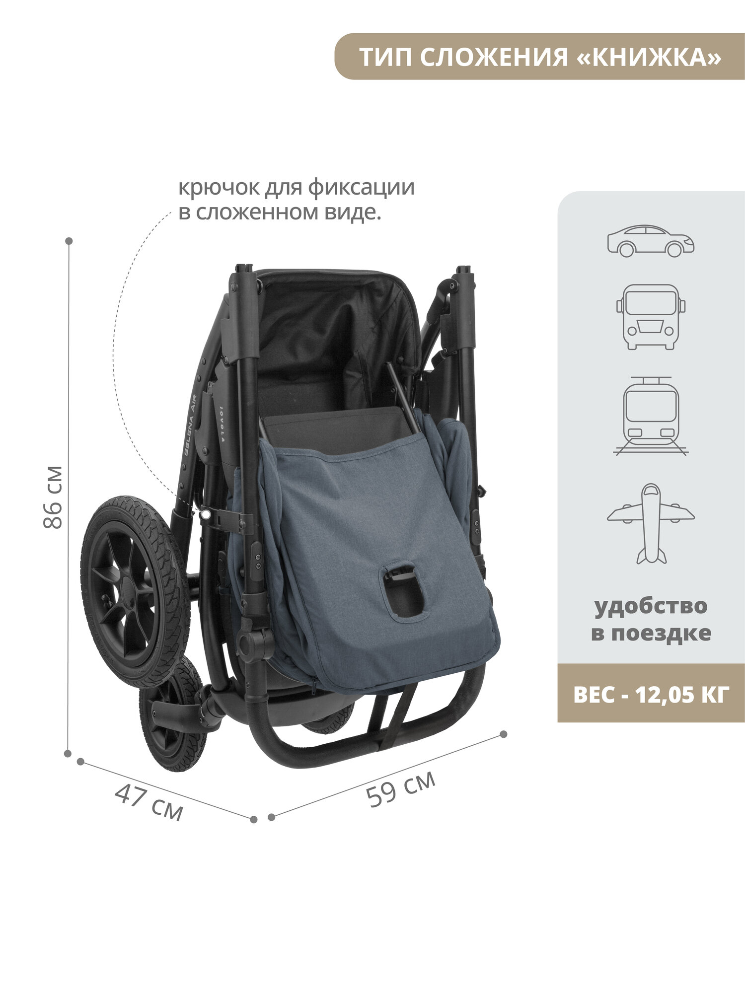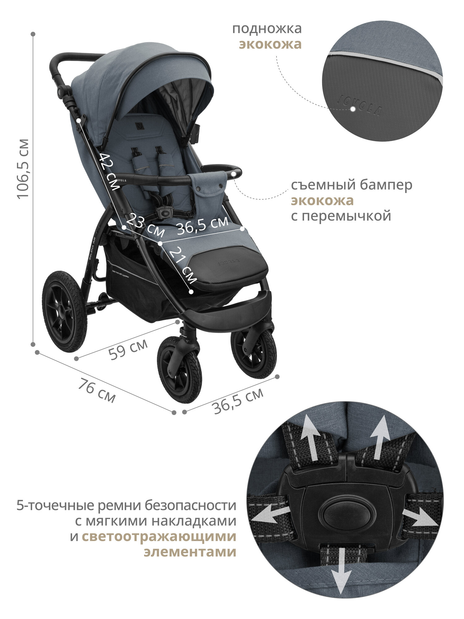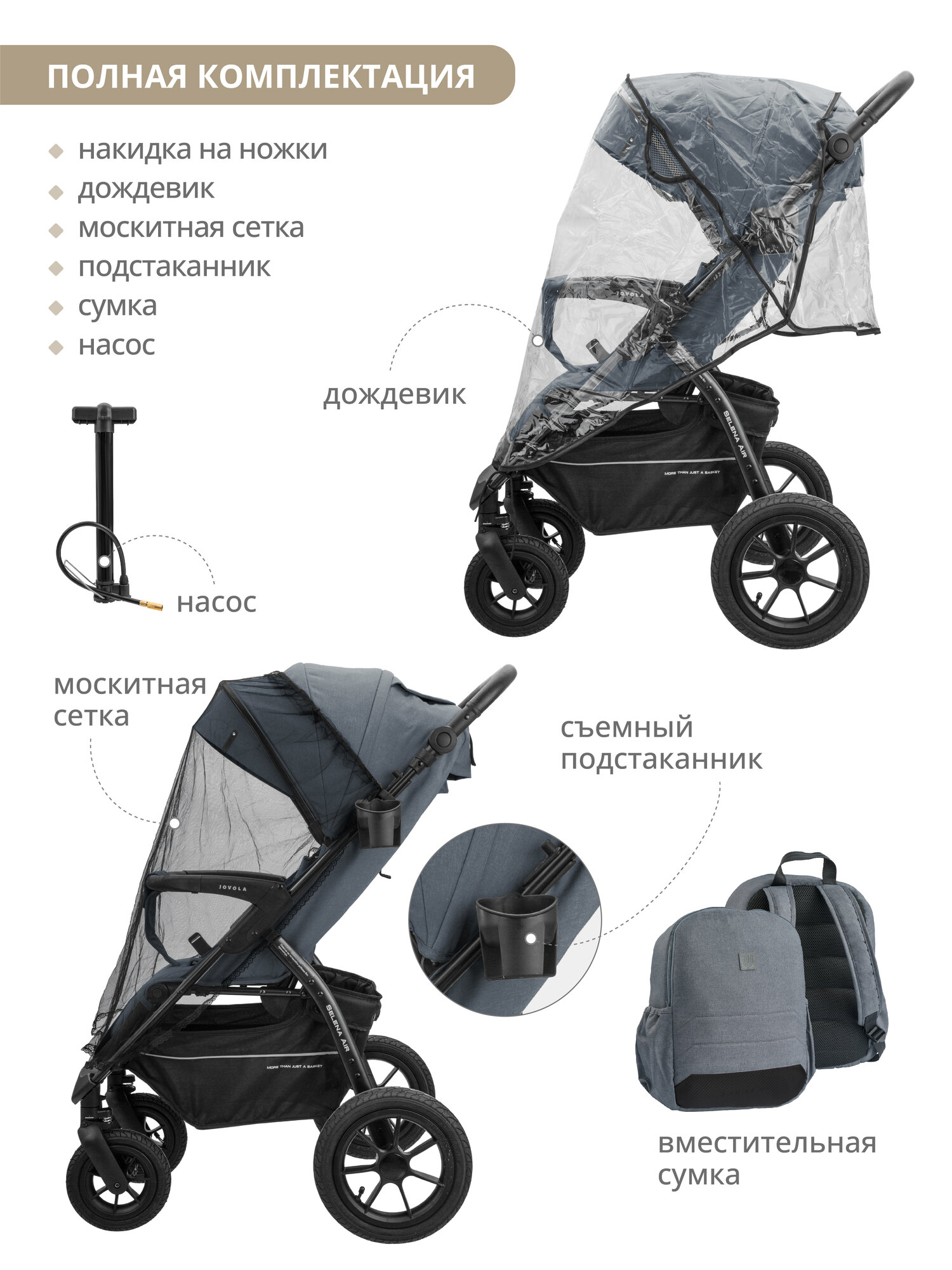 Коляска прогулочная Jovola Selena Air всесезонная, с сумкой, большие надувные колеса, темно-серый интересное: