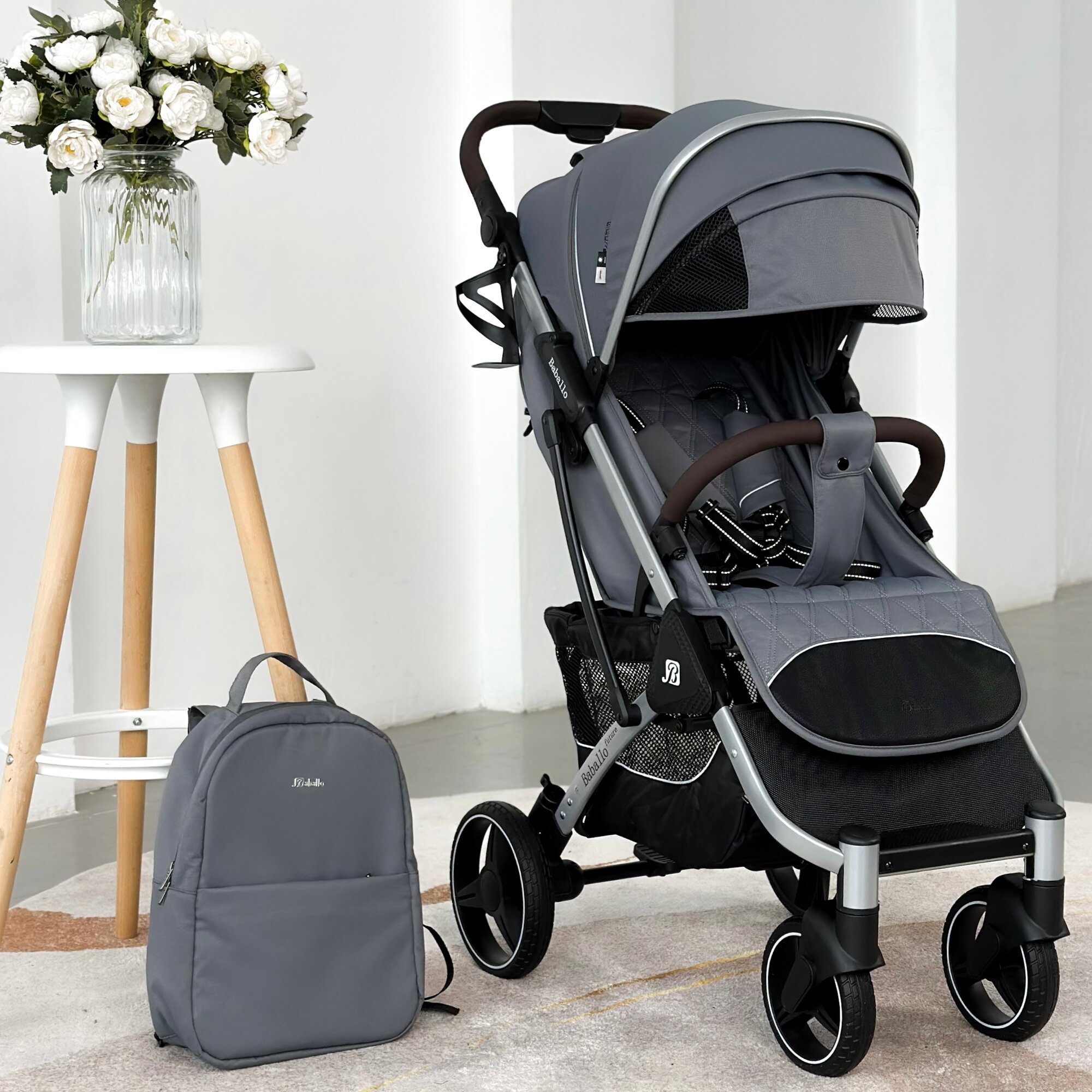 Прогулочная коляска BREND BABALLO ORIGINAL 2025, цвет серый, черная рама