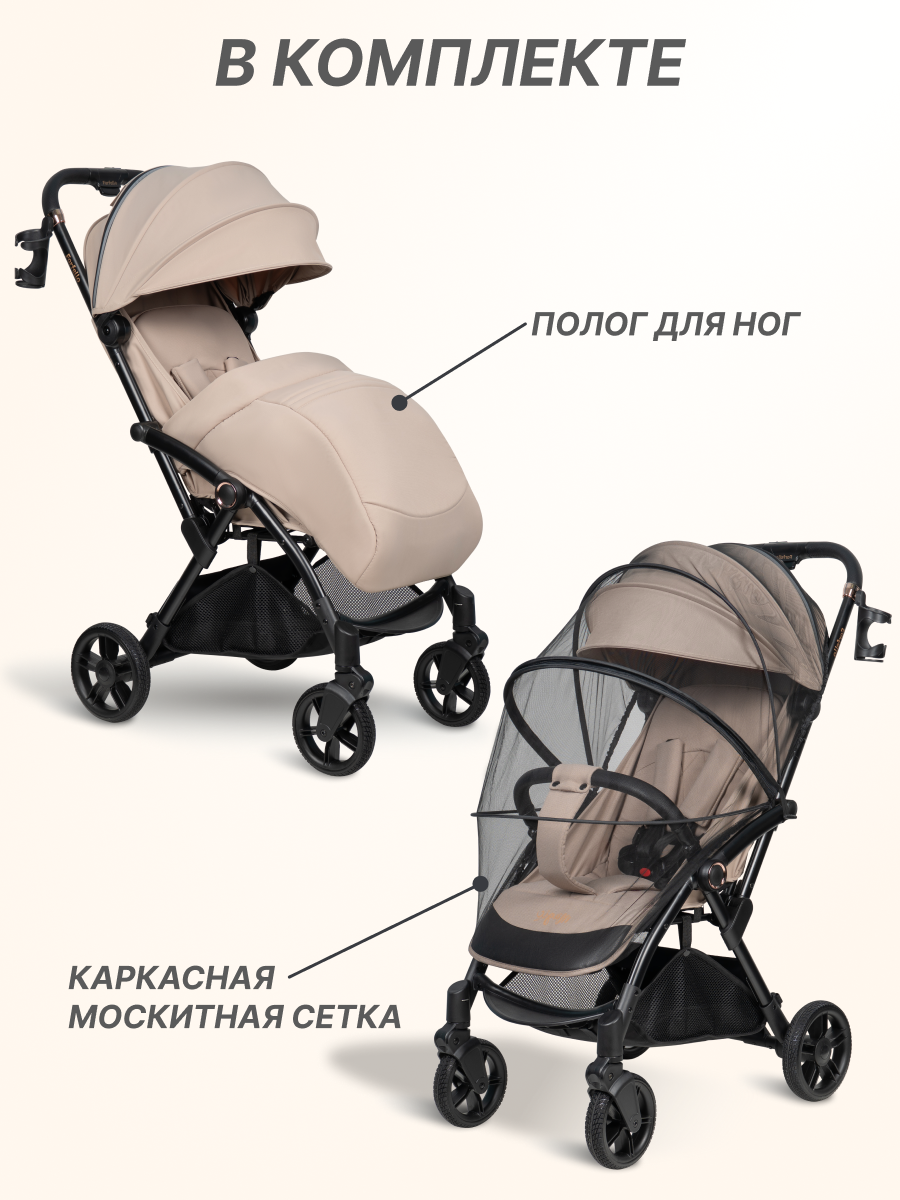 Коляска прогулочная детская самоскладывающаяся Farfello Magic, бежевый интересное: