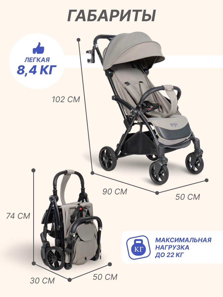 Коляска прогулочная детская самоскладывающаяся Farfello Magic, бежевый