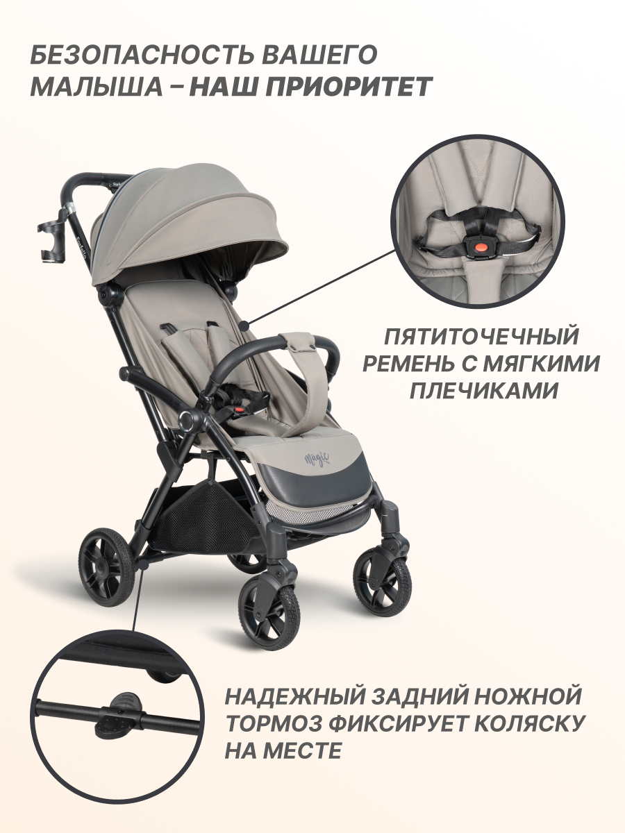 Коляска прогулочная детская самоскладывающаяся Farfello Magic, серый интересное: