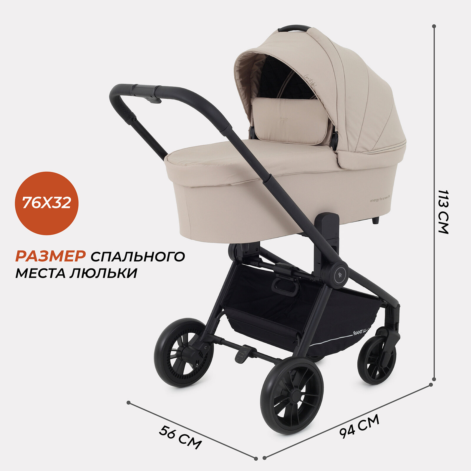 Коляска детская универсальная Rant Basic Energy 2 в 1 2024, арт. RA091, Beige интересное: