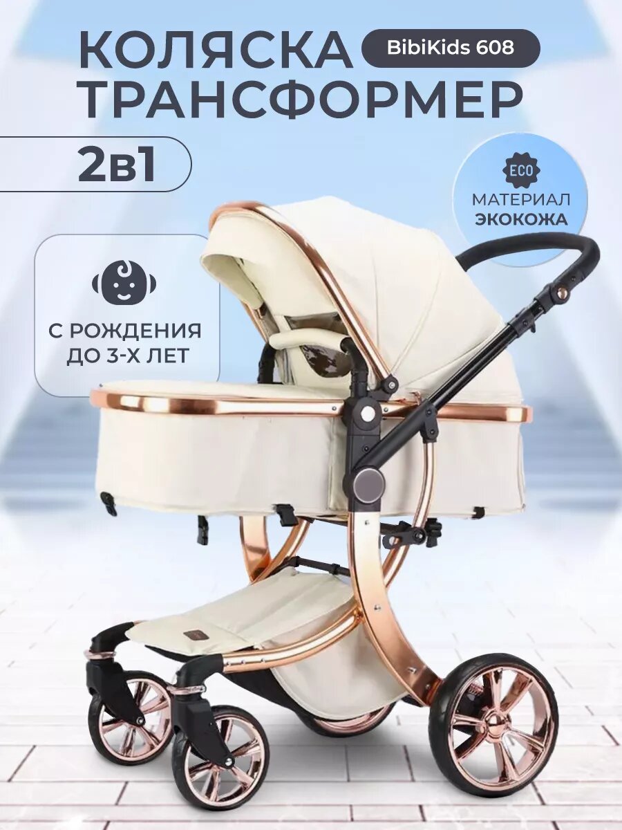 Купить Детская коляска трансформер 2 в 1 BibiKids 608 для новорожденных до 3-х лет 2025 Полный комплект