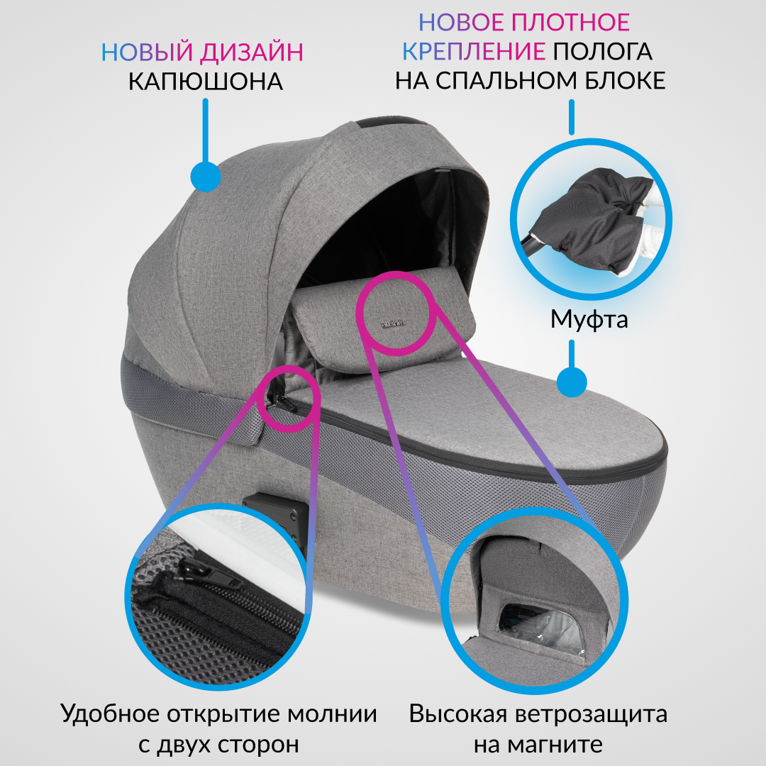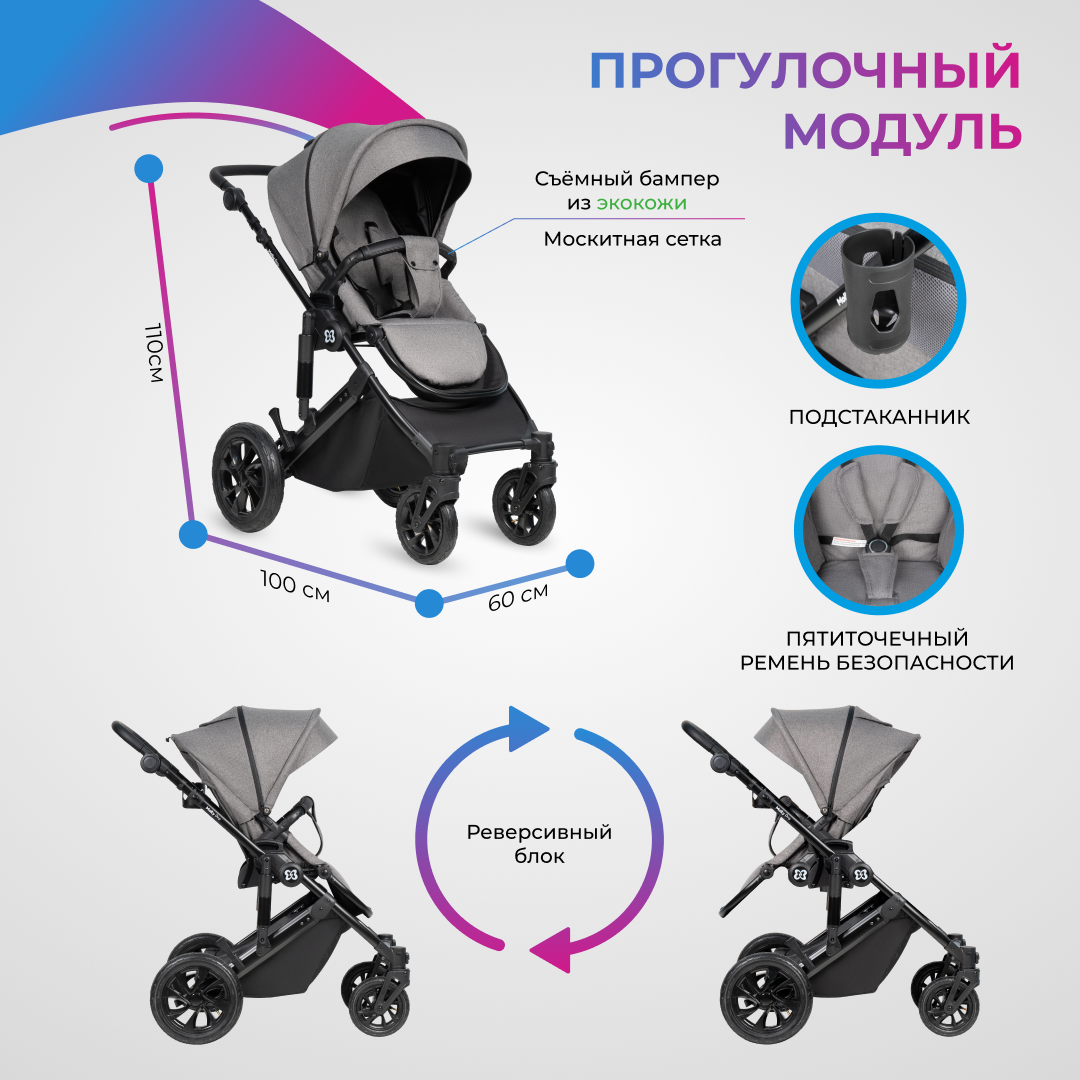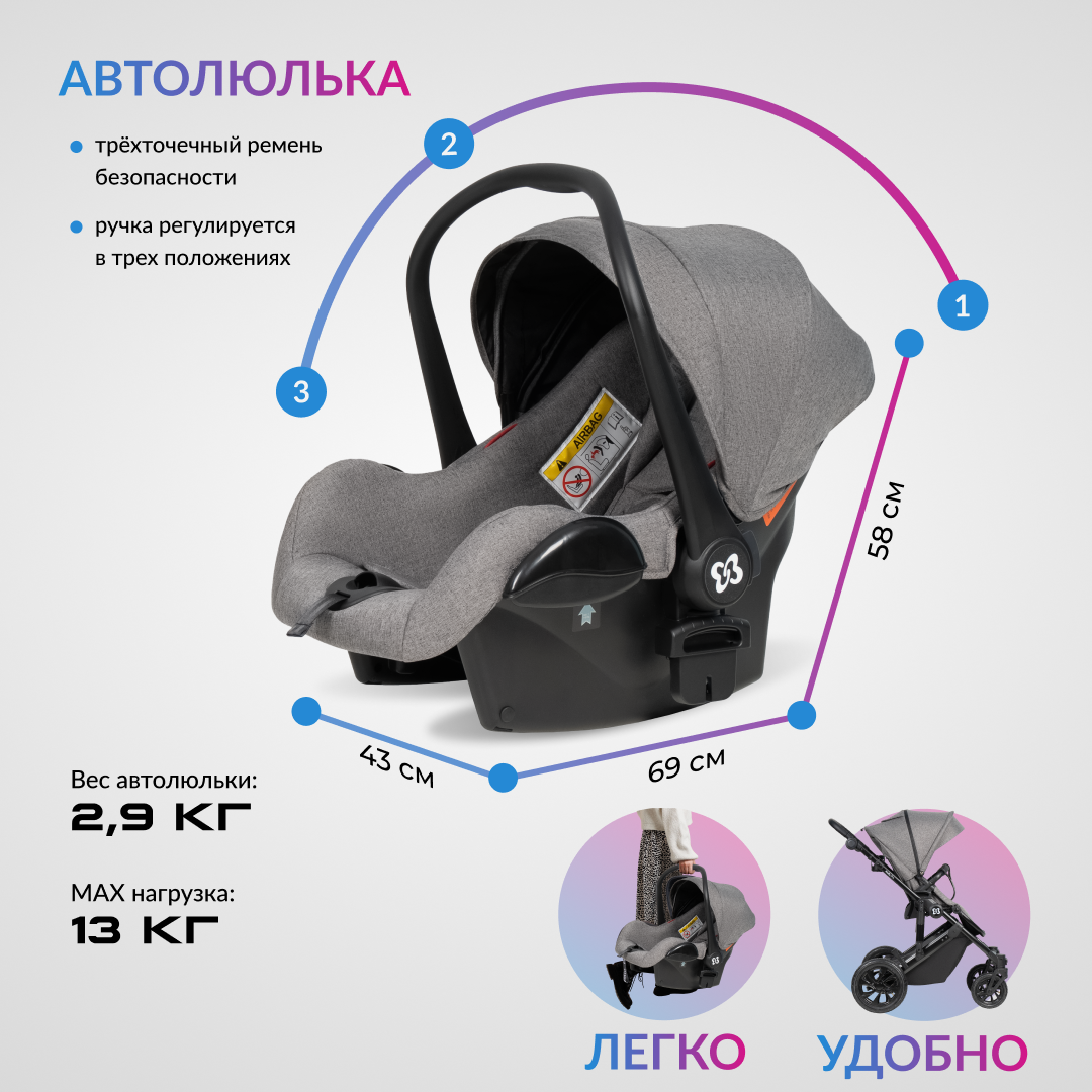 Коляска для новорожденных 3 в 1 Farfello Molly Pro, MP-1, серый интересное:
