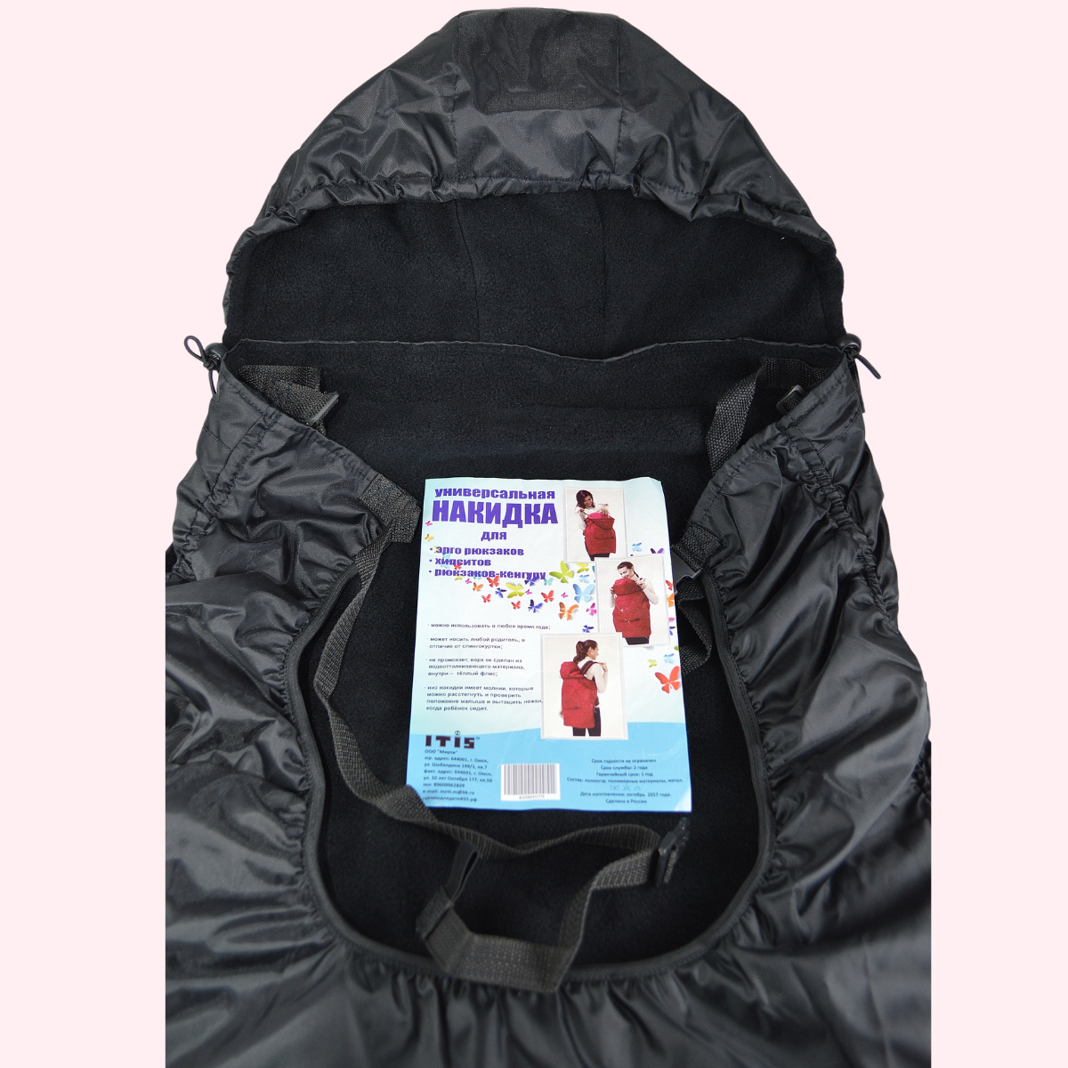 Накидка черная универсальная для эрго-рюкзаков хипситов, рюкзаков кенгуру интересное: